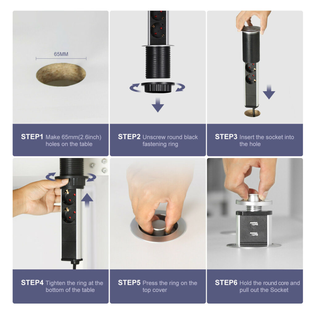 [ Стриманий та стильний ] Завдяки сучасному дизайну та технологіям розетка на стільниці ледь помітна. Але висувна розетка і під час введення в експлуатацію виглядає стильно.