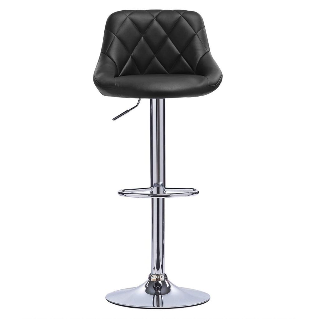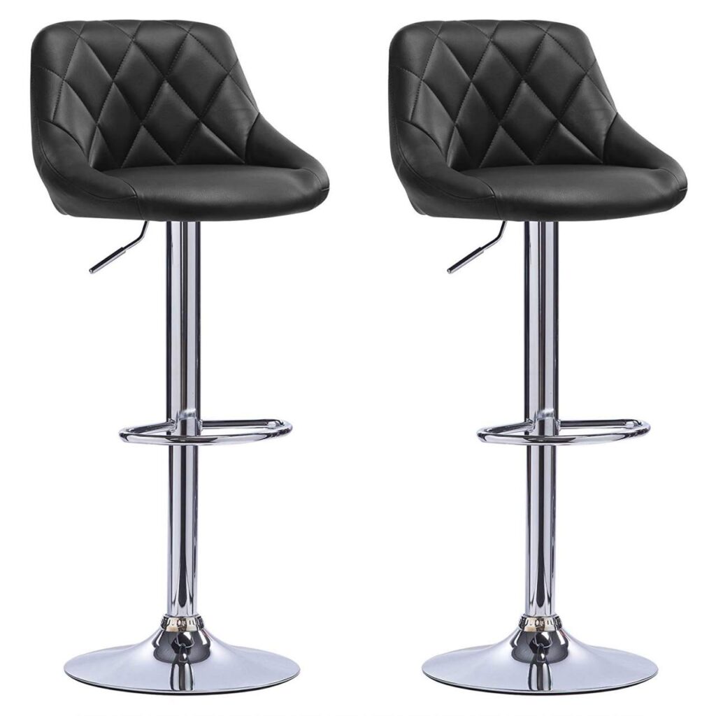Ці барні стільці виготовлені з високоякісної синтетичної шкіри і дуже стійкі завдяки хромованому металевому каркасу.