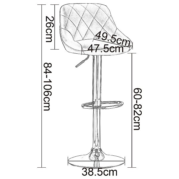 Завдяки вбудованій газовій пружині барні стільці можна плавно регулювати по висоті та вільно обертати на 360°.