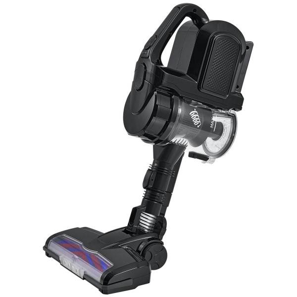 Ручний пилосос поставляється без сумки. Складна система фільтрації з фільтром HEPA, фільтром грубого очищення та пилозбірником забезпечує постійну потужність всмоктування. Пилозбірник об’ємом 0,25 л замінює дорогі мішки для пилососа, його можна легко зняти та випорожнити. Підлогова світлодіодна насадка зі світлодіодним переднім підсвічуванням. Гнучка насадка для підлоги підходить для килимів та всіх звичайних твердих підлог. Завдяки поворотно-відкидному з’єднанню з цим бездротовим пилососом ви зможете дістатися навіть важкодоступних місць під диваном або ліжком. Вбудоване світлодіодне підсвічування направляє світло у темні куточки.