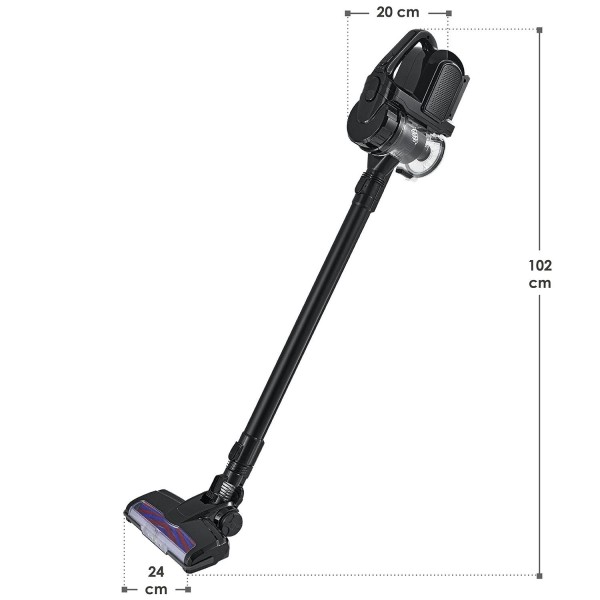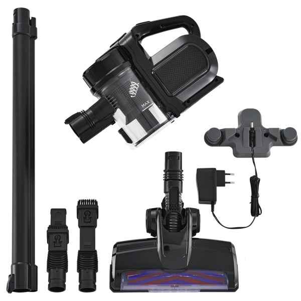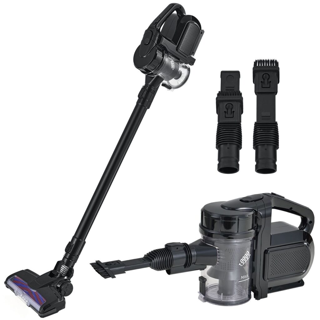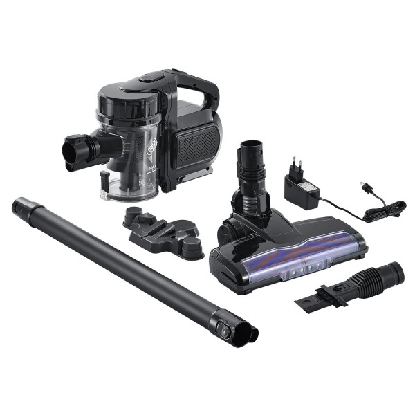 Практичний акумуляторний пилосос 2-в-1 VAC100 Pro (чорний) з настінним кронштейном, зарядною станцією та світлодіодною насадкою для підлоги – ідеальний пристрій для прибирання будинку.