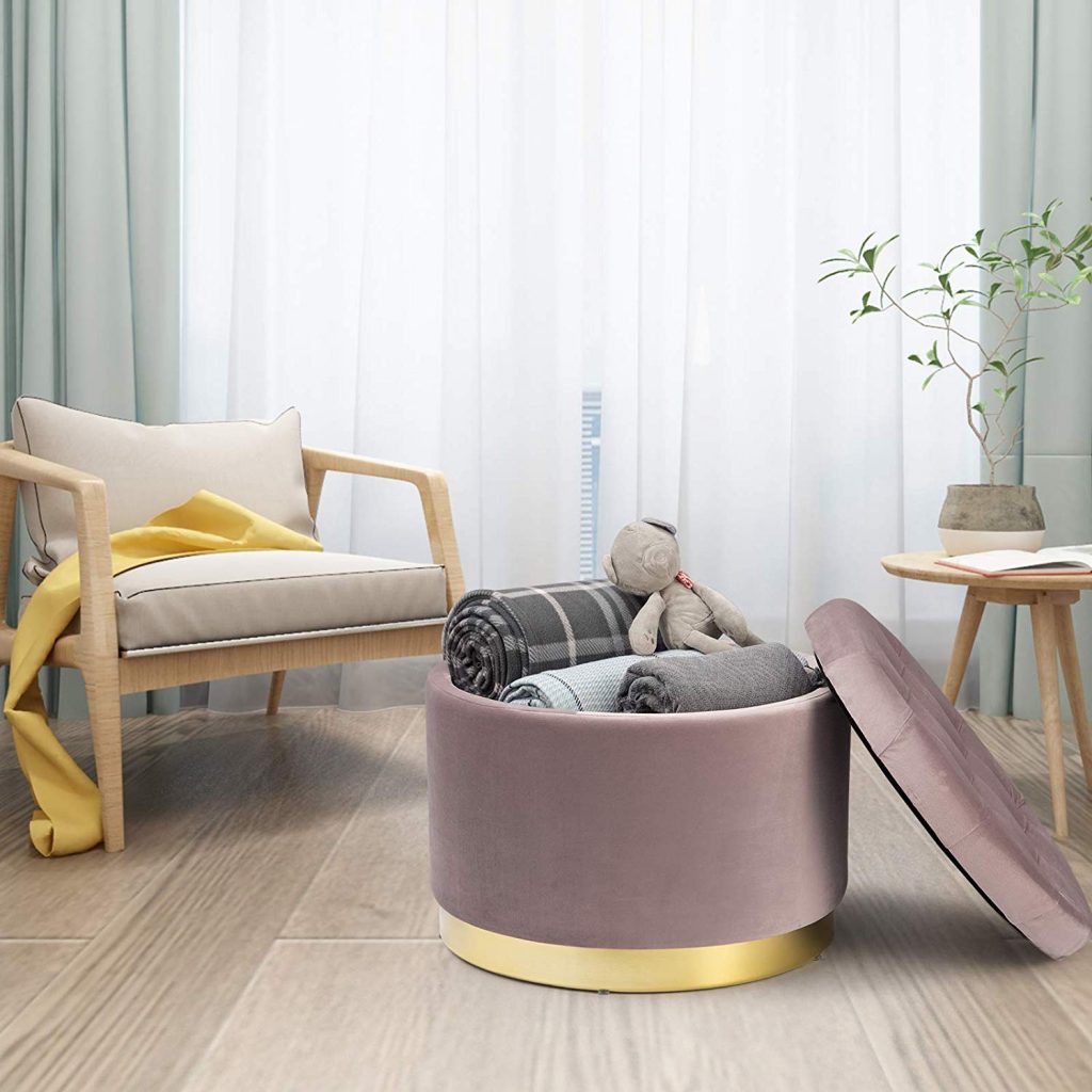 • Елегантний оксамитовий табурет із відділенням для зберігання компакт-дисків, книг, журналів, подушок тощо.
