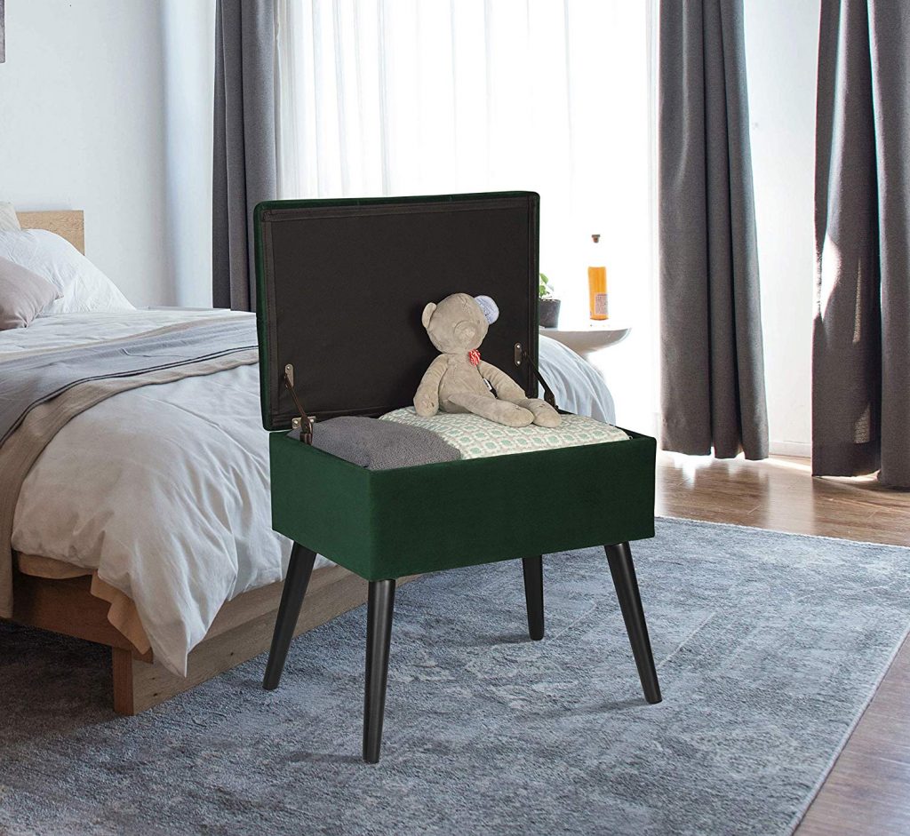 Оксамитовий табурет з місцем для зберігання SH52 (Зелений)Оксамитовий табурет з місцем для зберігання SH52 (Зелений)