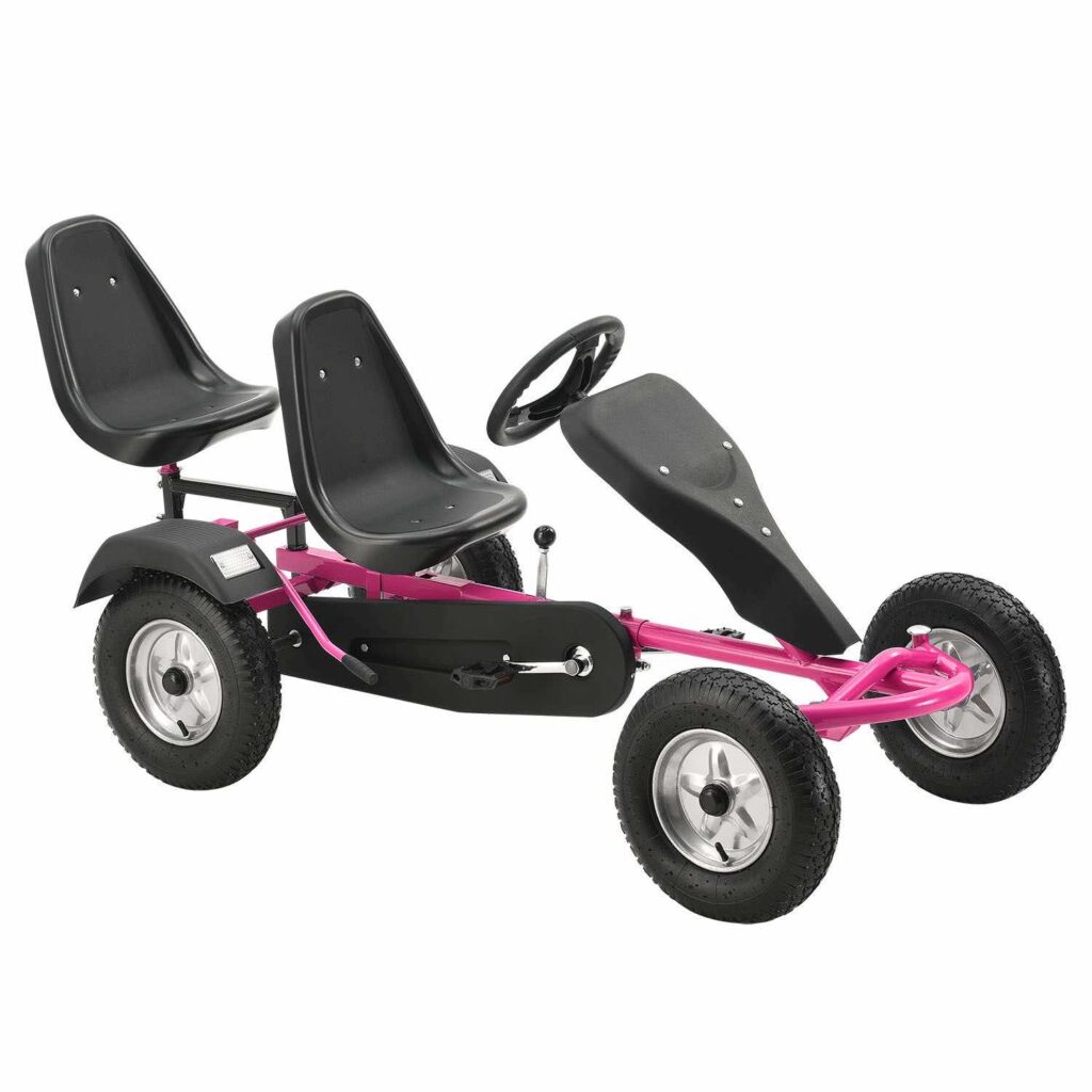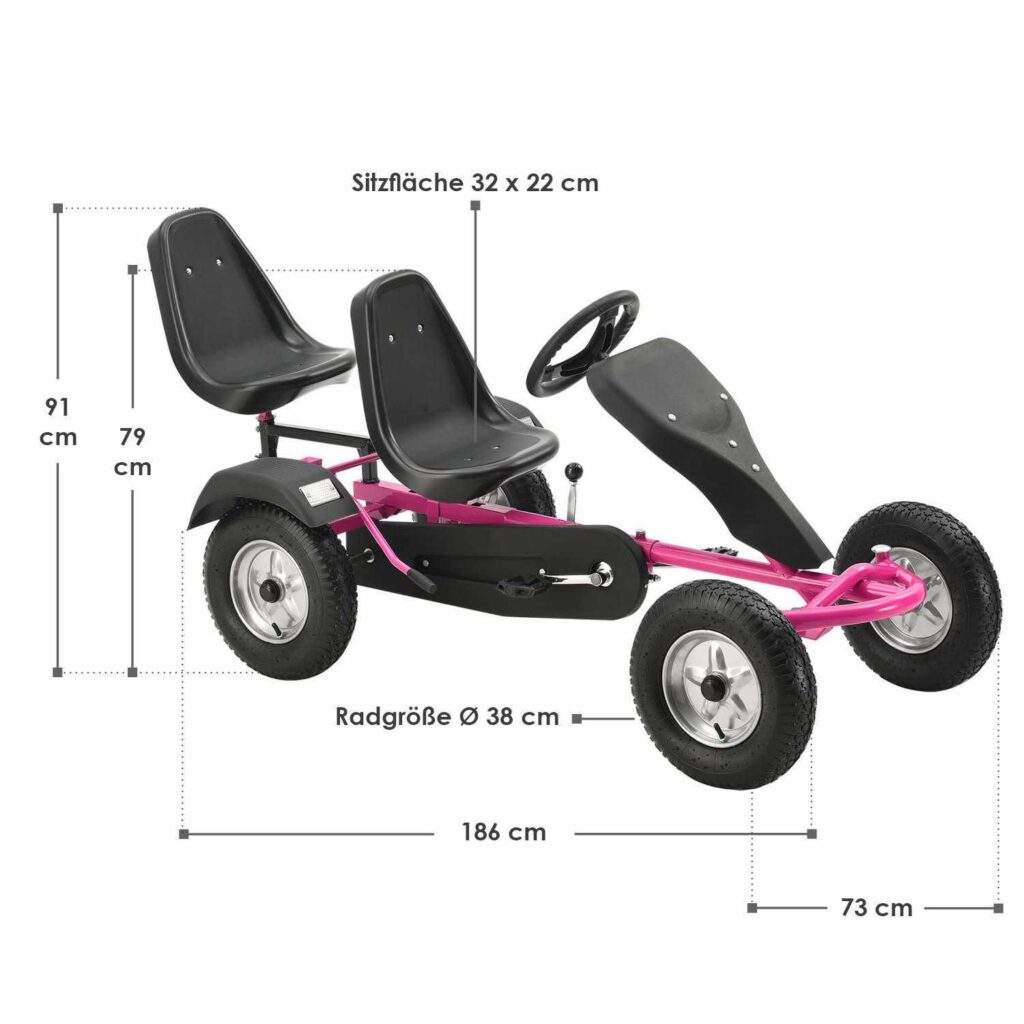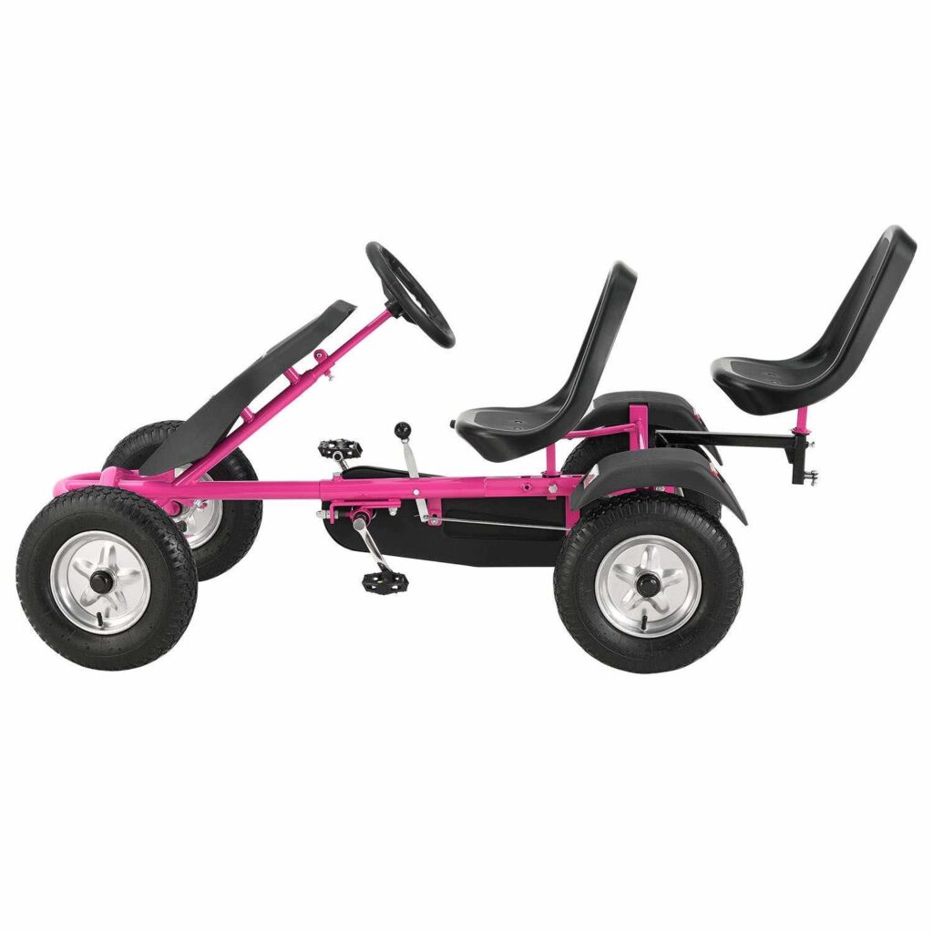 2-місний картинг Go-Kart (рожевий) – ідеальна іграшка для активного відпочинку для дітей віком 8+*. Завдяки великим пневматичним шинам, ланцюговому приводу і муфтою вільного ходу, що відключається, дитячий транспорт з педальним управлінням приносить задоволення від водіння. Його можна рухати вперед і назад, легко керувати кермовим колесом та зупиняти за допомогою ручного гальма заднього колеса. 2 регульовані сидіння забезпечують спільне задоволення від водіння на свіжому повітрі. Це також тримає вашу дитину у формі та підвищує її здатність реагувати.