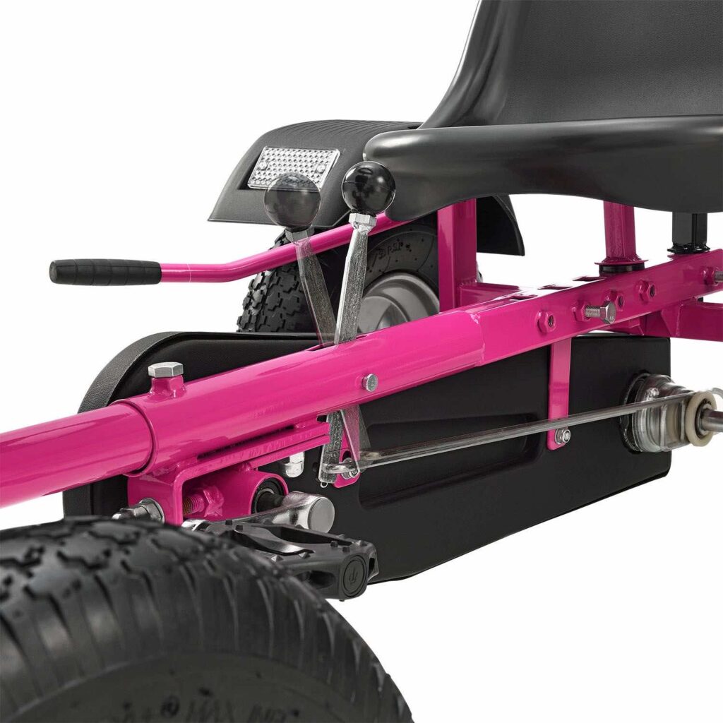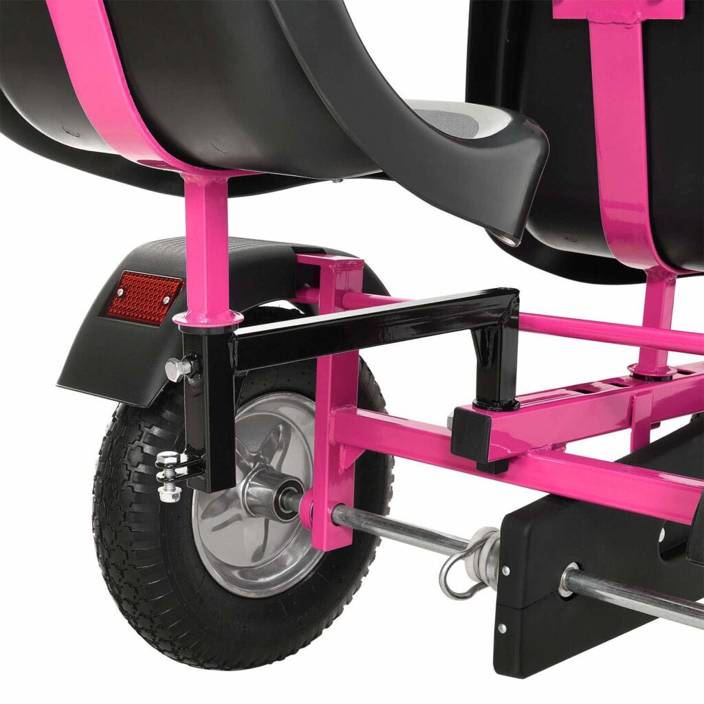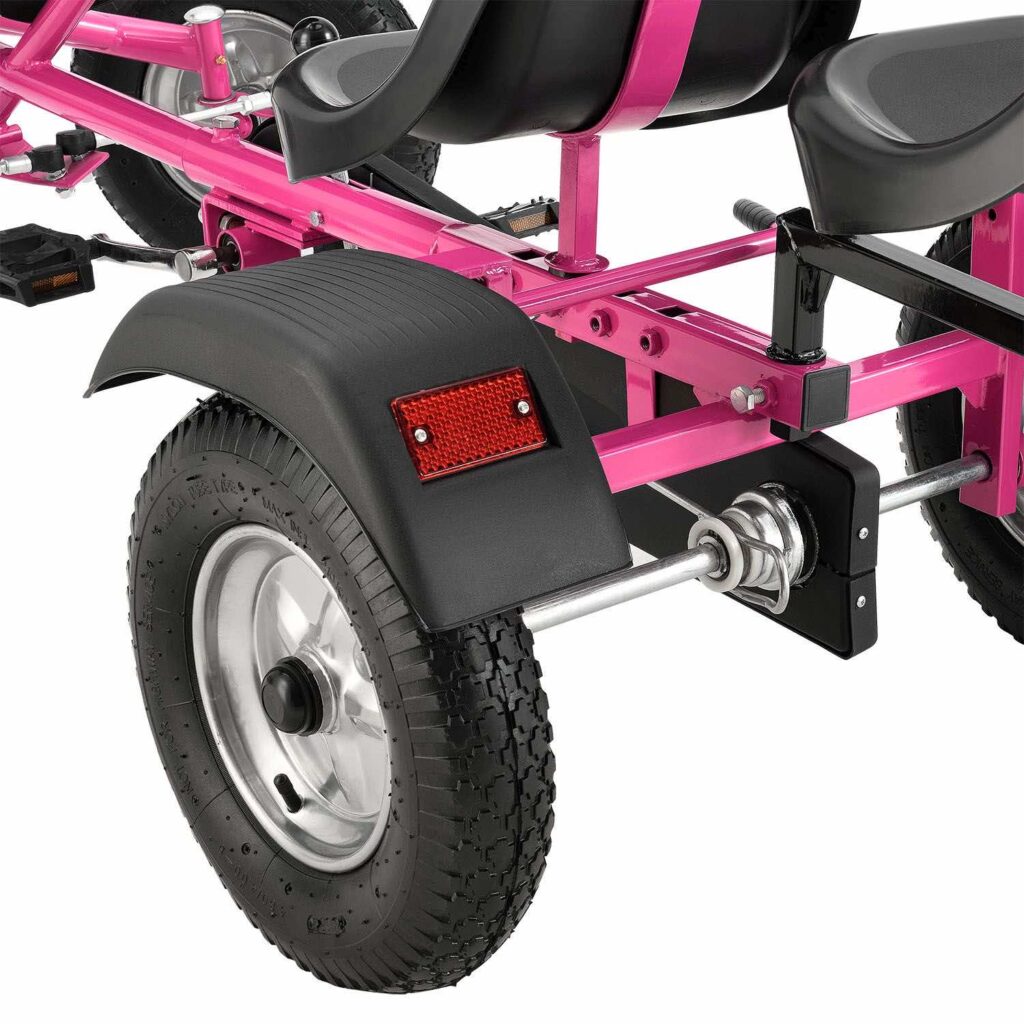 2-місний картинг Go-Kart (рожевий) – ідеальна іграшка для активного відпочинку для дітей віком 8+*. Завдяки великим пневматичним шинам, ланцюговому приводу і муфтою вільного ходу, що відключається, дитячий транспорт з педальним управлінням приносить задоволення від водіння. Його можна рухати вперед і назад, легко керувати кермовим колесом та зупиняти за допомогою ручного гальма заднього колеса. 2 регульовані сидіння забезпечують спільне задоволення від водіння на свіжому повітрі. Це також тримає вашу дитину у формі та підвищує її здатність реагувати.
