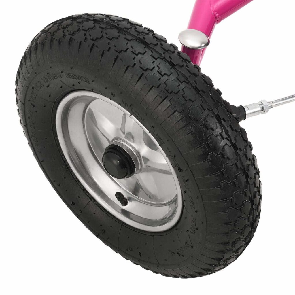 Шини діаметром 38 см зі сталевими дисками та віссю на шарикопідшипниках приносять величезне задоволення від водіння. Пневматичні шини забезпечують зчеплення з дорогою та поглинають нерівності. Ваша дитина безпечно їде рівними, сухими поверхнями, такими як асфальт і тротуар. Слід уникати пухких ґрунтів, таких як гравій, та пісок.