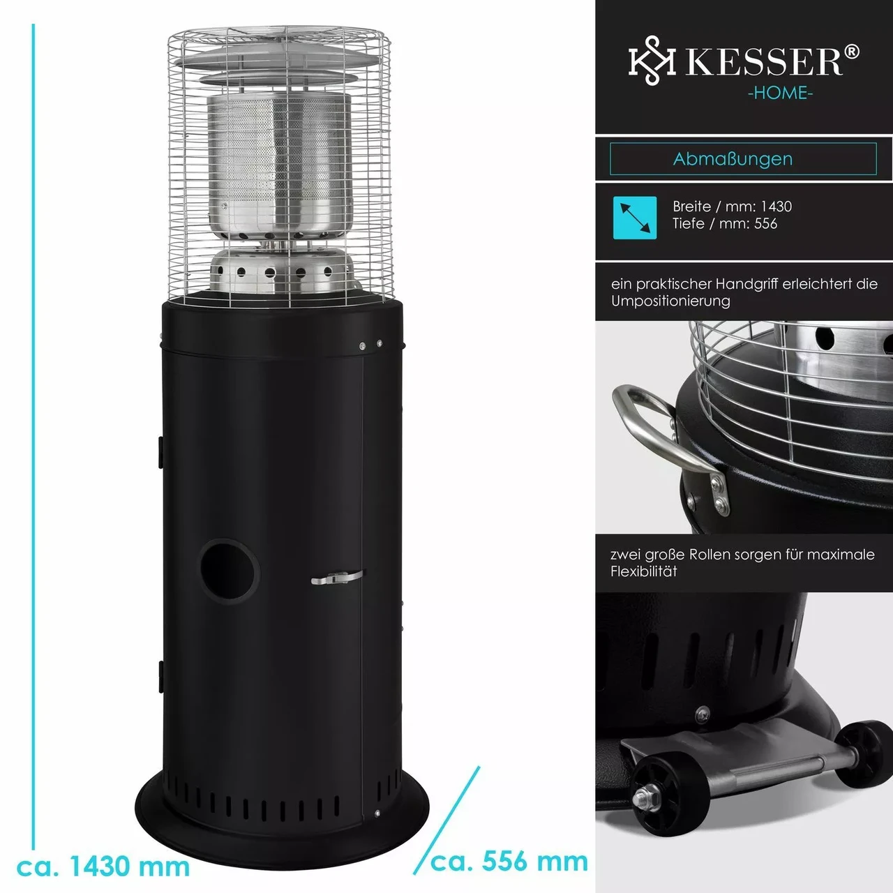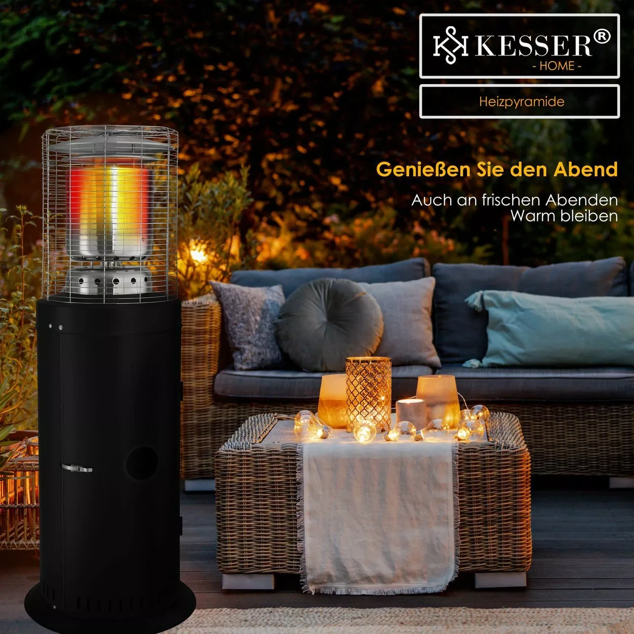 Створіть затишну атмосферу для вечірок на свіжому повітрі або на балконі. Газовий обігрівач KESSER – це надійне джерело тепла для саду, тераси, ресторану, пивного саду або шатрової вечірки. Він призначений для комфортного використання навіть у холодні дні.