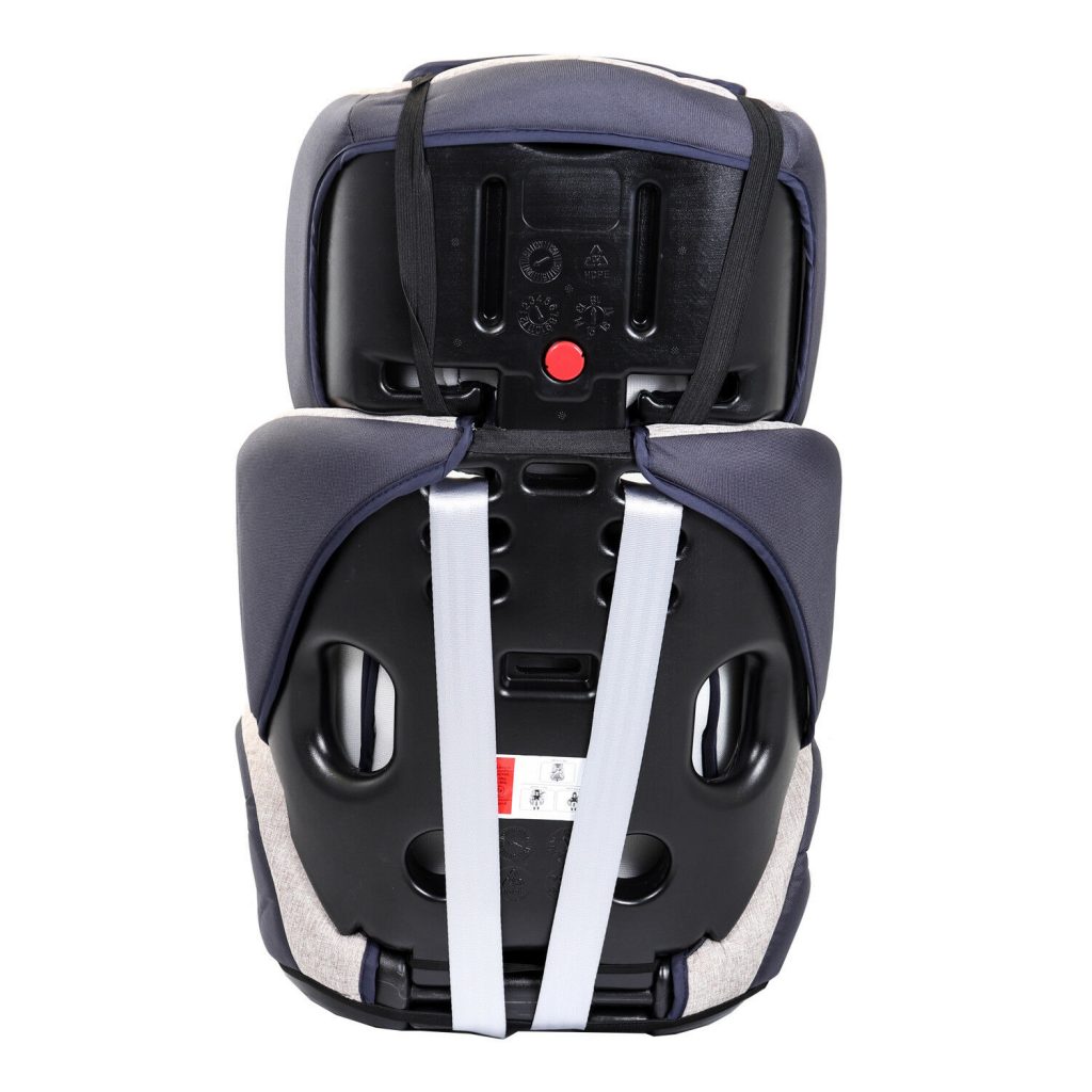 Регульована по висоті система натягу ременя дозволяє вам спочатку розташувати дитини в сидінні, закрити 5-точковий ремінь безпеки, а потім натягнути ремінь через центральний ремінь безпеки на нижній частині сидіння.