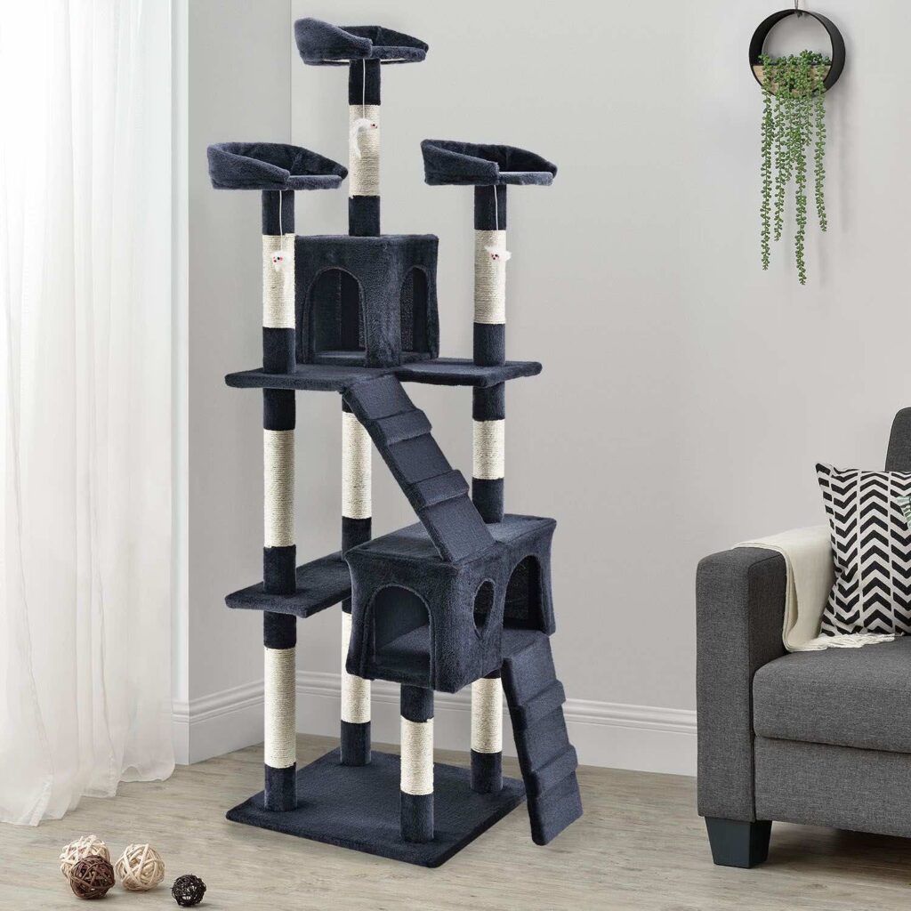 Кігтіточка Amy середньої висоти (сіра) змушує котячі серця битися швидше. Вона дає вашому улюбленому вихованцю численні можливості грати, стрибати, відпочивати та точити пазурі. Ваша кішка почуватиметься абсолютно комфортно і із задоволенням усамітниться на котячому дереві. Завдяки своїй компактній конструкції кігтеточка висотою 170 см займає мало місця і її можна встановити навіть у невеликих квартирах. Це робить котяче дерево вигідним вкладенням для кожного власника кішки.
