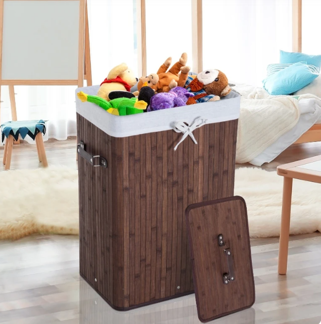 ✔ Кошик для білизни зі справжнього бамбукового дерева