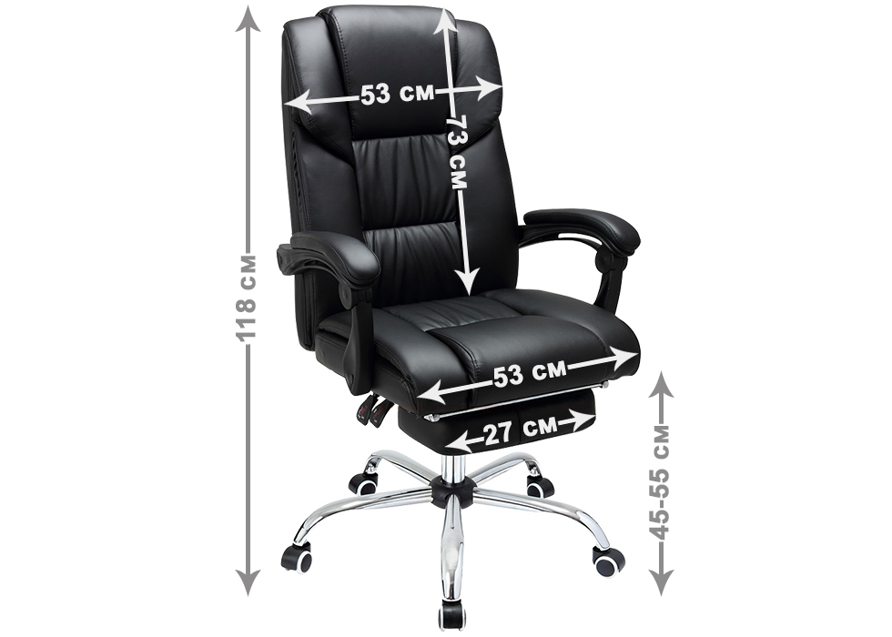 Регулюється за висотою за допомогою механізму газової пружини. Кут нахилу спинки регулюється, його можна повністю розкласти.