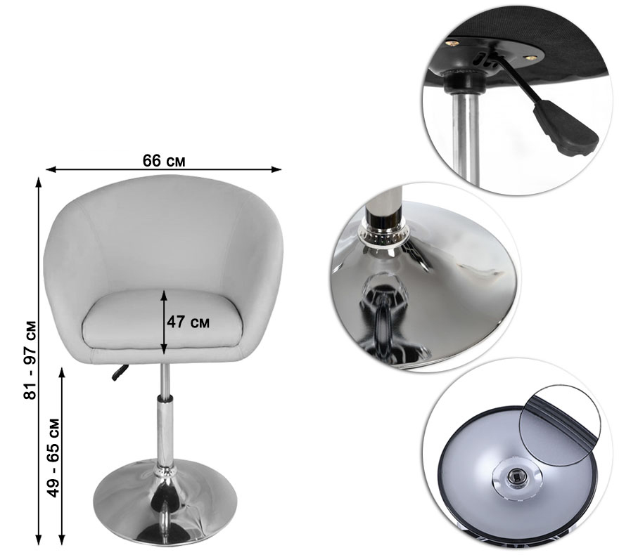 Висота сидіння на пневматичному приводі регулюється приблизно: 49-65 см