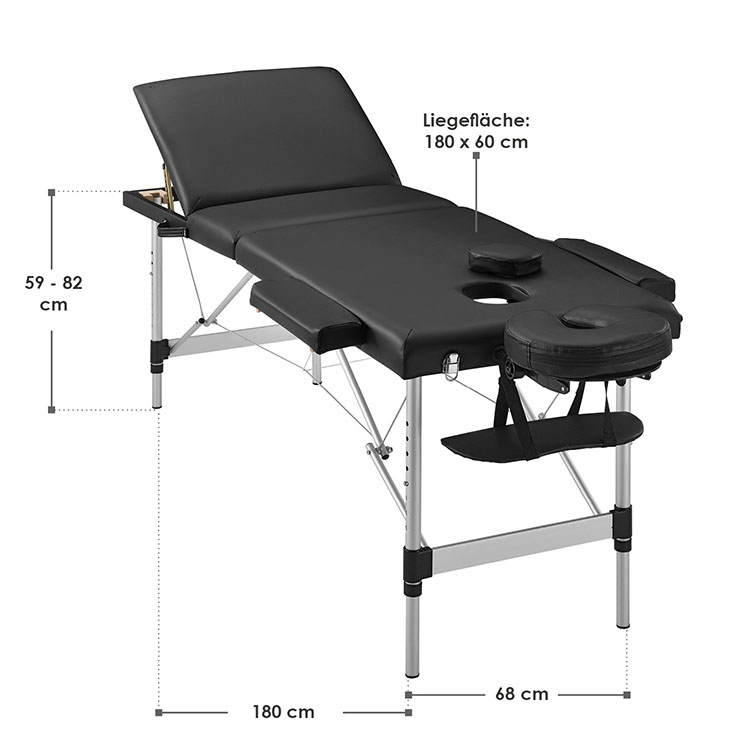 Зручний та регульований по висоті:На додаток до оббивки товщиною 9 см із синтетичної шкіри, в комплект входять регульовані підлокітники, ножна секція та ергономічні підголівники – ідеальний варіант для великого масажу. Залежно від зростання масажиста ви можете відрегулювати висоту масажного столу за 8 кроків від 59 до 82 см.