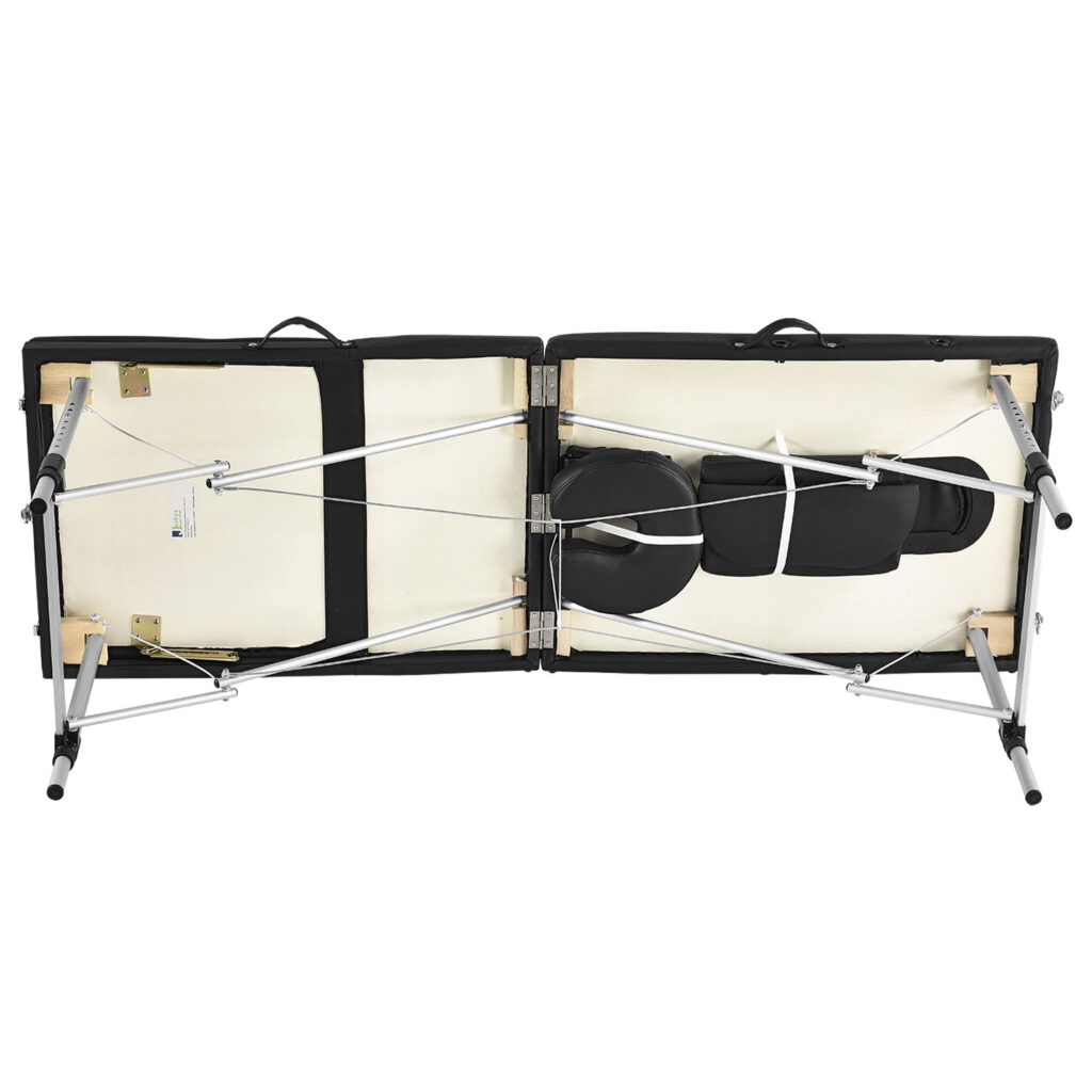 Каркас столу дуже міцний, виготовлений із алюмінію. Додаткову стійкість конструкції надає розтяжка із металевих тросів. Незважаючи на свою невелику вагу, дана модель дуже міцна і витримує динамічне навантаження до 250 кг, що дозволяє майстру інтенсивно працювати з пацієнтами з великою вагою. Завдяки регулятору висти стіл підлаштовується під індивідуальні параметри та потреби майстра.