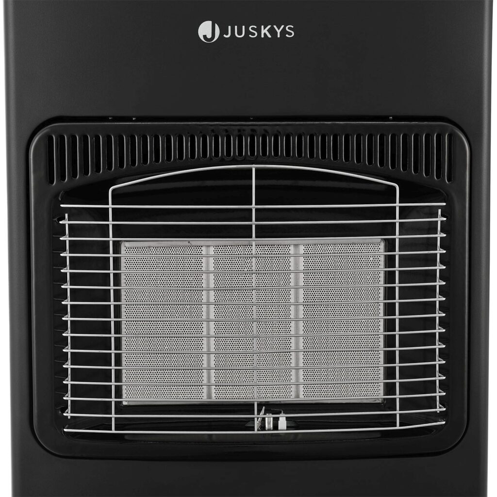 Ефективне опалення з низьким споживанням? Випромінюючий обігрівач з 3 керамічними пластинами забезпечує приємне та рівномірне тепло без тривалого очікування. Керамічний газовий нагрівач забезпечує швидке виділення тепла. Захисна решітка захищає від необережного дотику до керамічного пальника.