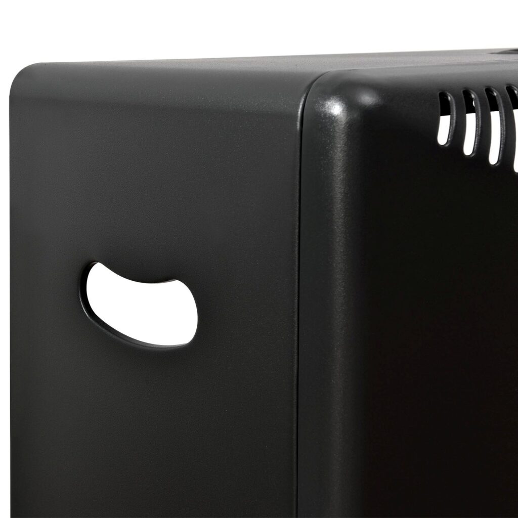 При розмірах 42 х 29 х 73 см променистий обігрівач заощаджує місце. Мобільний газовий обігрівач чорного елегантного кольору гармонує майже з усіма предметами інтер’єру. Важливо: Виберіть сухе, крите та стійке місце. Будь ласка, завжди забезпечуйте достатню вентиляцію.