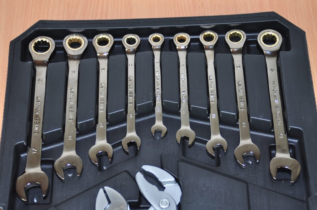 – Ключі плоско-кільцеві: 6; 8; 10; 11; 12; 13; 14; 15; 17 мм з тріскачкою