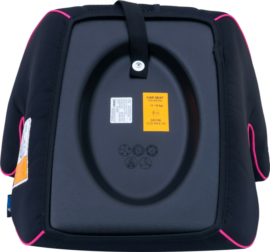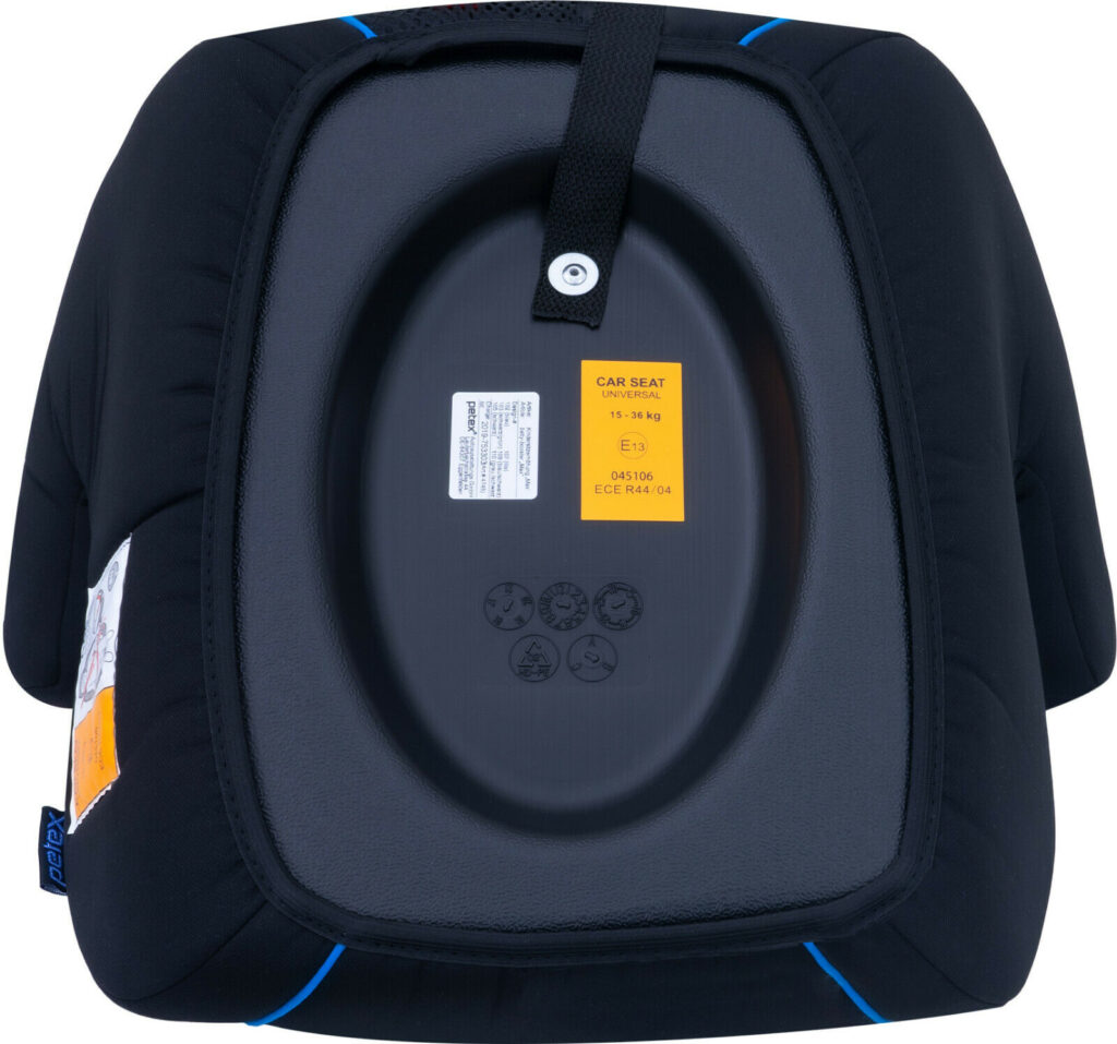 Автокрісло-бустер підходить для будь-якого стандартного автомобільного крісла та пристібає дитину в автомобілі за допомогою 3-точкового ременя безпеки. На відміну від наповнювачів з пінополістиролу, що часто використовуються, дитячі сидіння PETEX мають наповнювач з удароміцного твердого пластику і пройшли випробування відповідно до ECE R44/04. Оббивка – тканина, що дихає. З метою дотримання гігієни чохол сидіння є знімним і його можна прати.