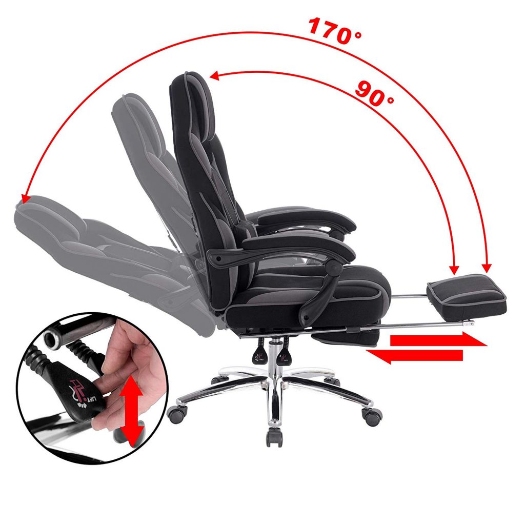 – спинка регулюється максимум на 170°.