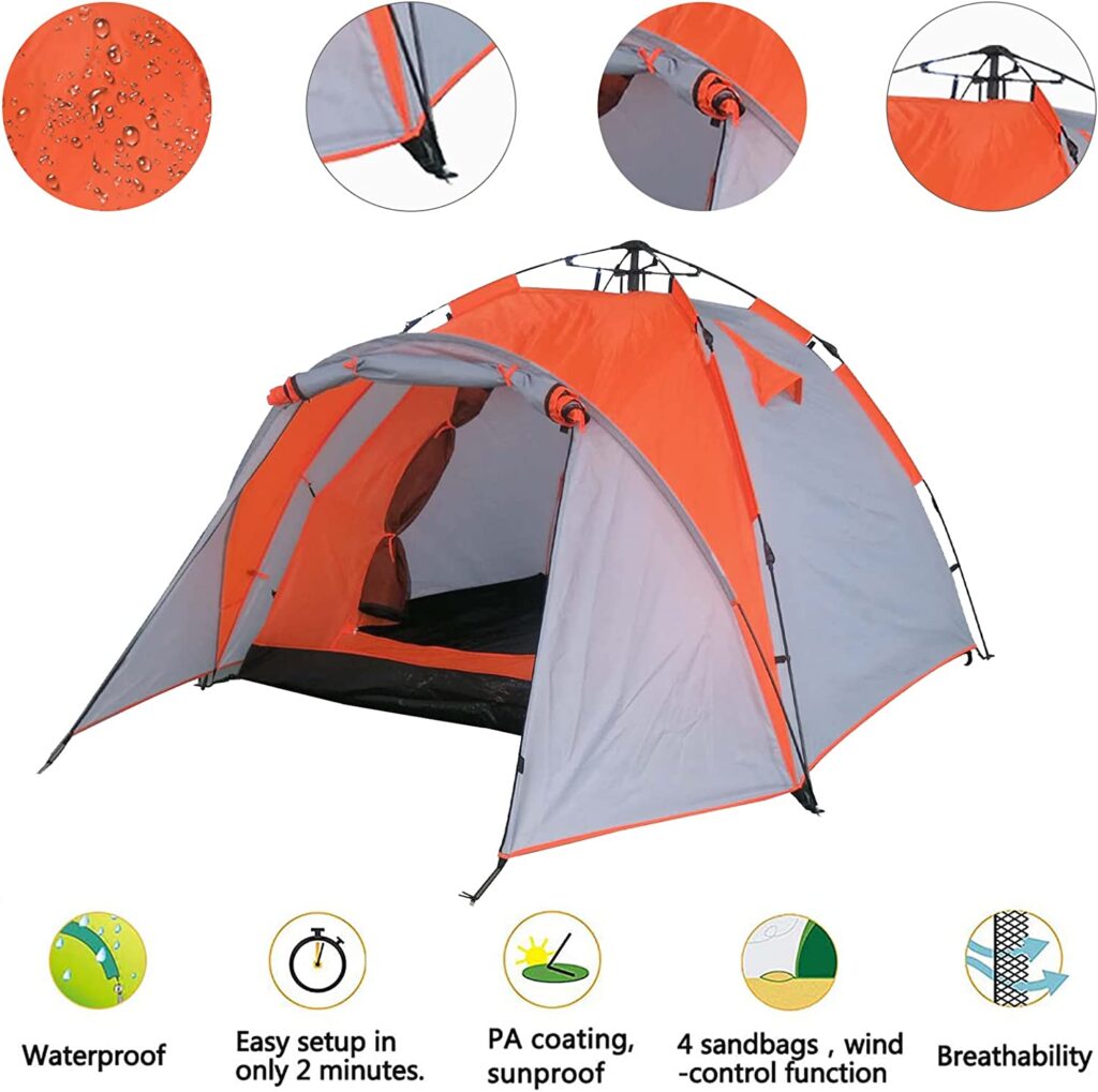 З цим наметом для кемпінгу ви станете ідеальним компаньйоном для поїздки на природу. Він забезпечує захист від вітру та негоди, а внутрішня площа 2 х 2 м забезпечує достатньо місця для 3 людей.