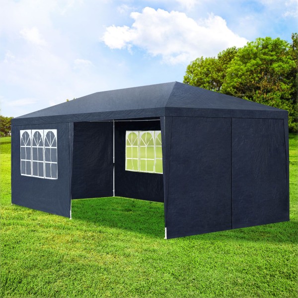 Павільйон для святкування 3x6 м (синій) є ідеальним захистом від сонця для будь-яких подій на відкритому повітрі. Будь то барбекю, день народження чи весілля - практичний павільйон запрошує вас посидіти разом і відсвяткувати з родиною та друзями. Ви та ваші гості добре захищені від палючого сонця під наметом. Увечері знімні бічні панелі служать додатковим захистом від прохолодних протягів і комарів. Оптимальні умови для масового святкування особливих подій у власному саду чи на терасі.Технічні характеристики: Матеріал рами: сталь. Матеріал покрівлі: поліетилен 100 г/м² (100%) Матеріал бічних частин: 90 г/м² поліетилен (100%) Колір садового намету: синій Бічна стінка з вікном: 4 Бічна панель на блискавці: 2 Кількість ніжок: 6 Кількість мотузок кріплення: 6 Кількість заземлених шипів: 12 Розміри (прибл.): Ширина: 300 см Глибина: 600 см Висота: 250 см Стрижневий дах: Ø 1,8 см Основа тарілки: Ø 2,4 см Підказки: УВАГА: садовий павільйон не забезпечує належного захисту під час шторму чи негоди. Не використовуйте під час грози, сильних поривів вітру, сильного дощу або граду. Альтанка не розрахована на таку погоду. Підходить тільки для приватного використання. Будь ласка, надійно встановіть святковий намет на рівній, сухій і твердій поверхні. Будь ласка, дотримуйтеся мінімальної відстані 3 метри до наступного намету. Неможливо з'єднати 2 намети разом. Обсяг поставки: 1 × намет 1 × Інструкція зі складання -