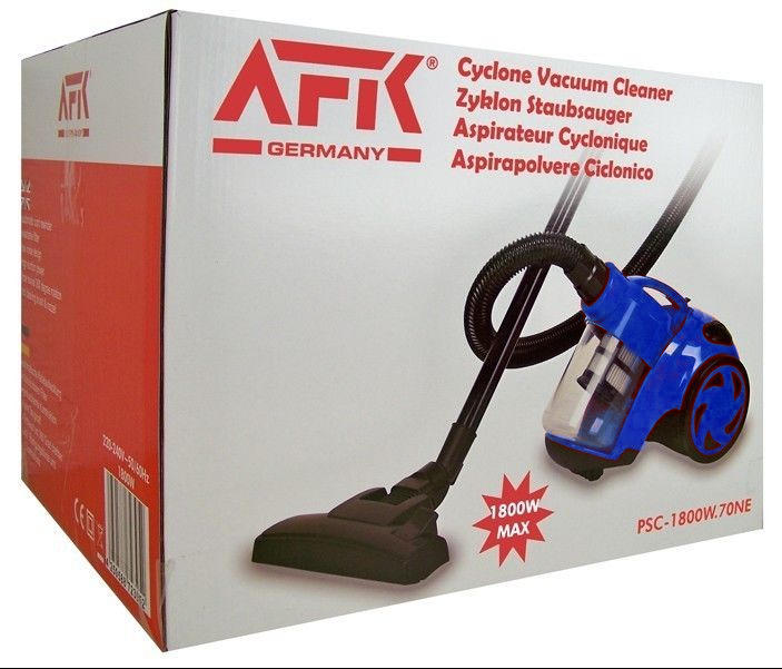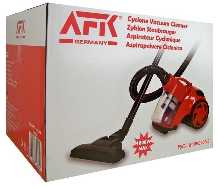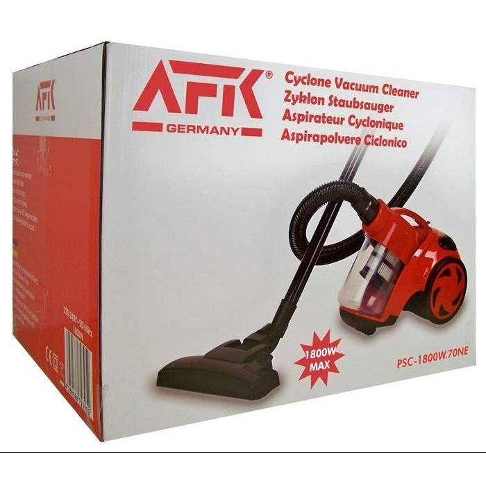 Контейнерний пилосос AFK – це вигідна альтернатива звичному нам пилососу з мішком-пилозбірником. Усередині його механізму знаходиться спеціальний відсік, в якому за допомогою відцентрової сили створюється вихор, що відокремлює сміття від повітря, після чого сміття потрапляє в спеціальний контейнер, а повітря фільтрується і в чистому вигляді надувається. Контейнер очищається від сміття, що зібралося звичайним витрушуванням. Набір насадок та телескопічна труба дозволить значно розширити функціональність пилососу та можливості під час збирання. Ця модель дуже легка і маневрена, завдяки чому щоденне прибирання буде проводитися швидко і без зайвих зусиль, а компактні розміри пилососа дозволять зберігати його навіть у шафі.