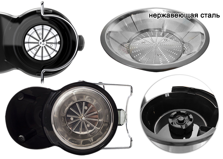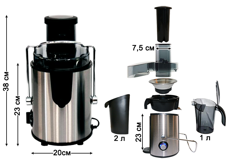 – Соковитискач виконаний з високоякісної нержавіючої сталі.