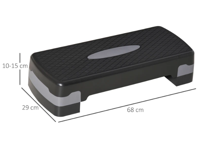 Зробіть своє фітнес та кардіотренування особливо ефективними та щадними за допомогою цього степпера від HOMCOM. Модульні ніжки дозволяють регулювати висоту від 10 до 15 см. Міцні матеріали не тільки забезпечують надійну фіксацію, але й захищають суглоби. Особливо компактний за конструкцією, ви можете легко брати його з собою куди завгодно та зберігати, щоб заощадити місце.Опис: