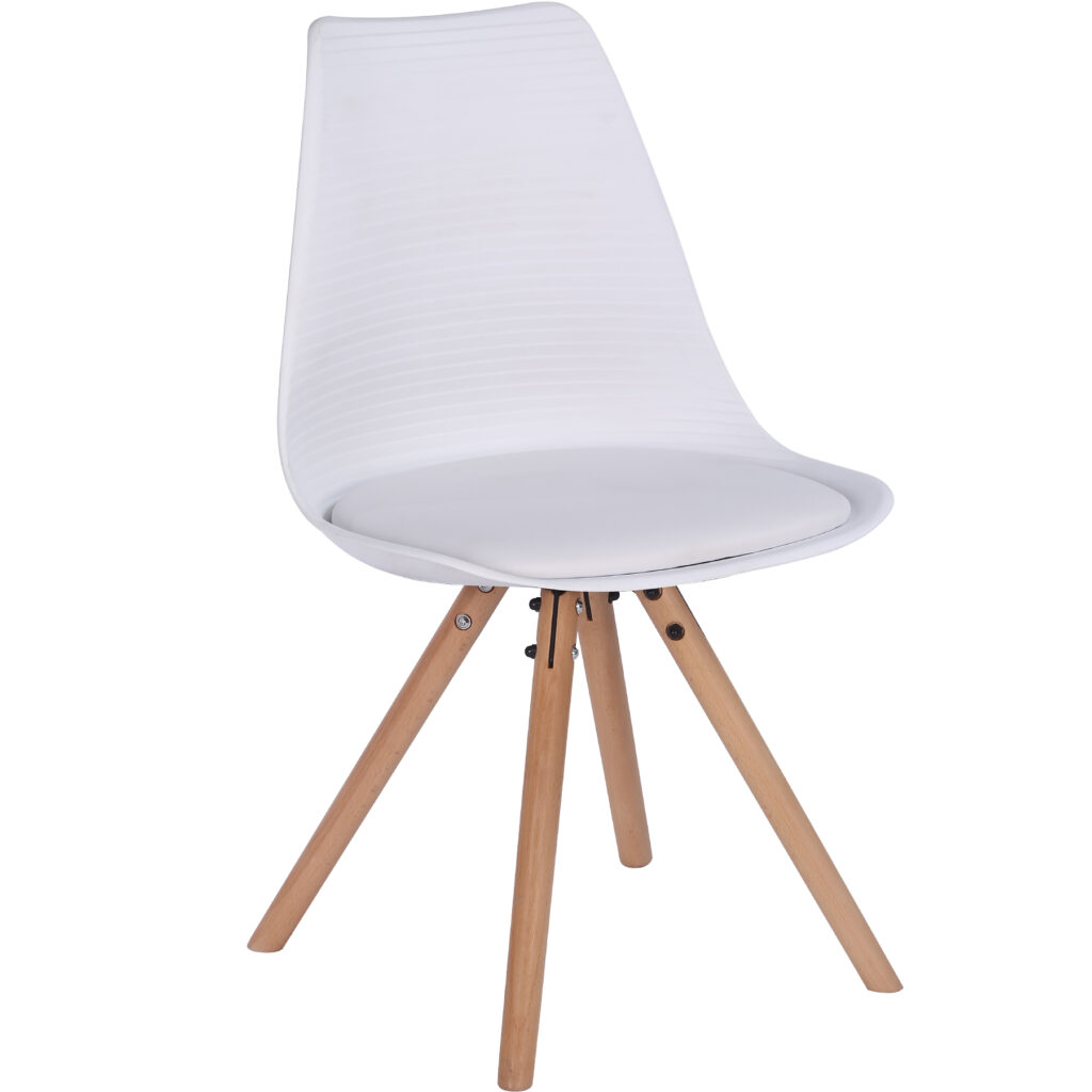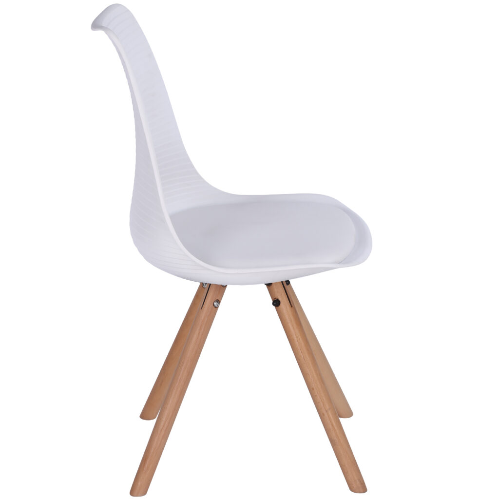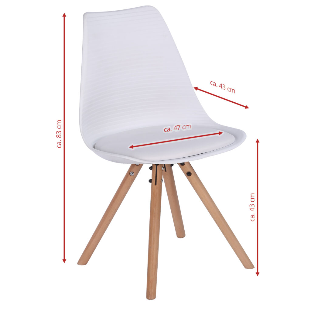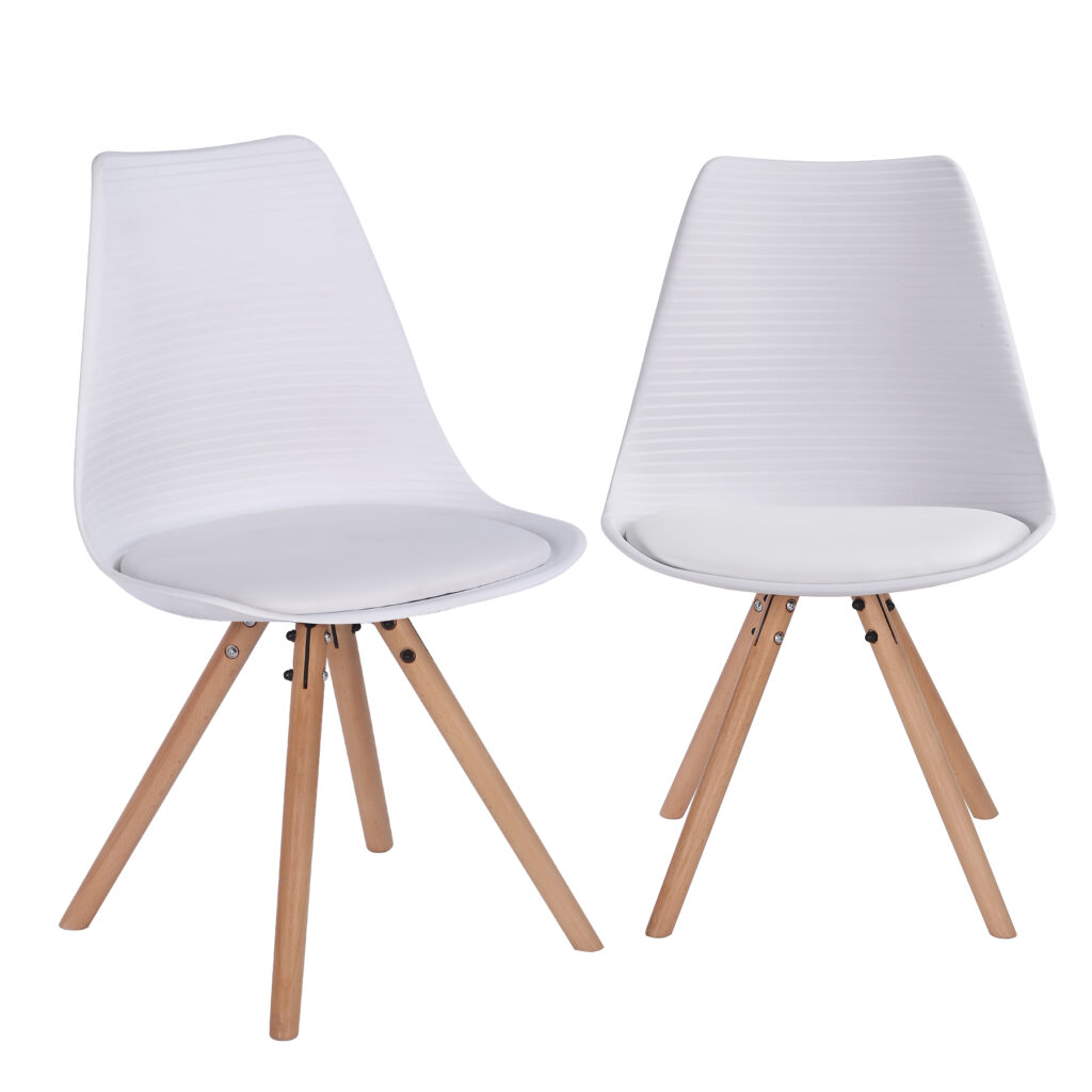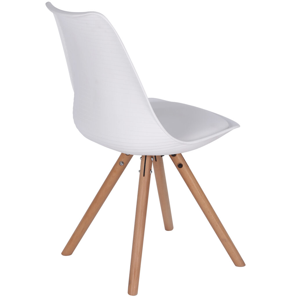 Стільці для їдальні в класичному скандинавському стилі – мінімалістичний, сучасний та практичний. Ці стільці – стильний елемент дизайну у Вашому житловому просторі – будь то кухня, їдальня, вітальня чи кімната для гостей. Оскільки ці стільці зроблені з твердого пластику, а подушки сидінь – з поліуретанової шкіри, їх особливо легко доглядати. Забруднення можна просто стерти.