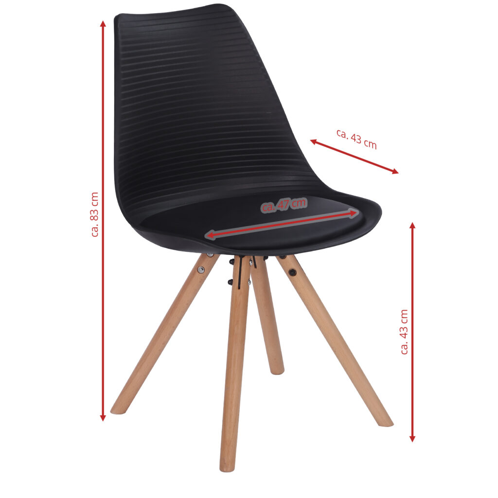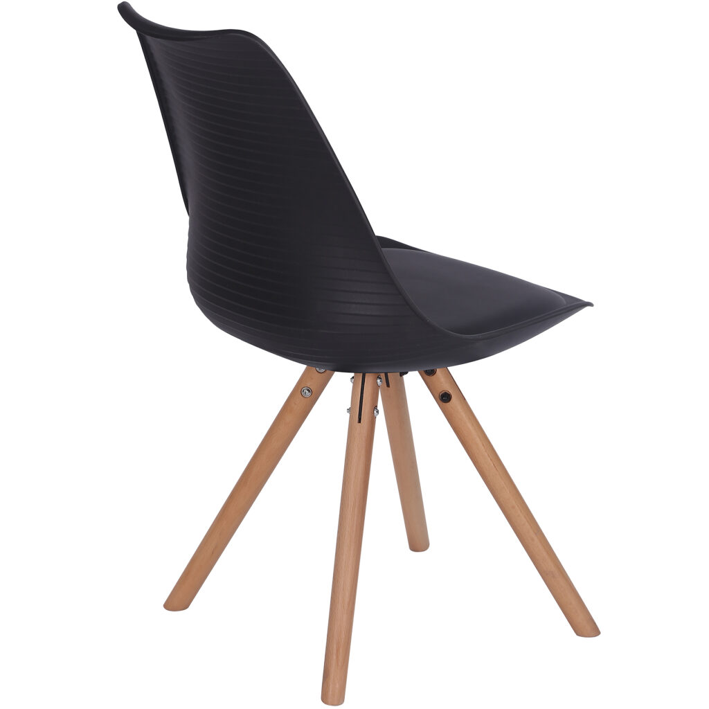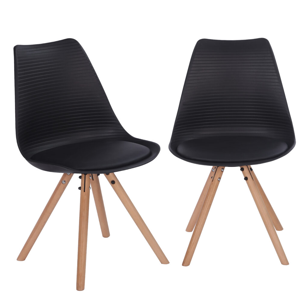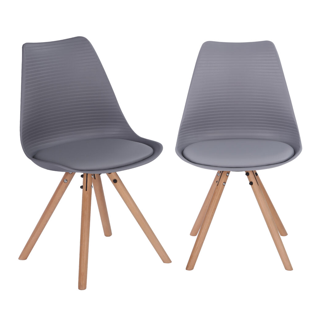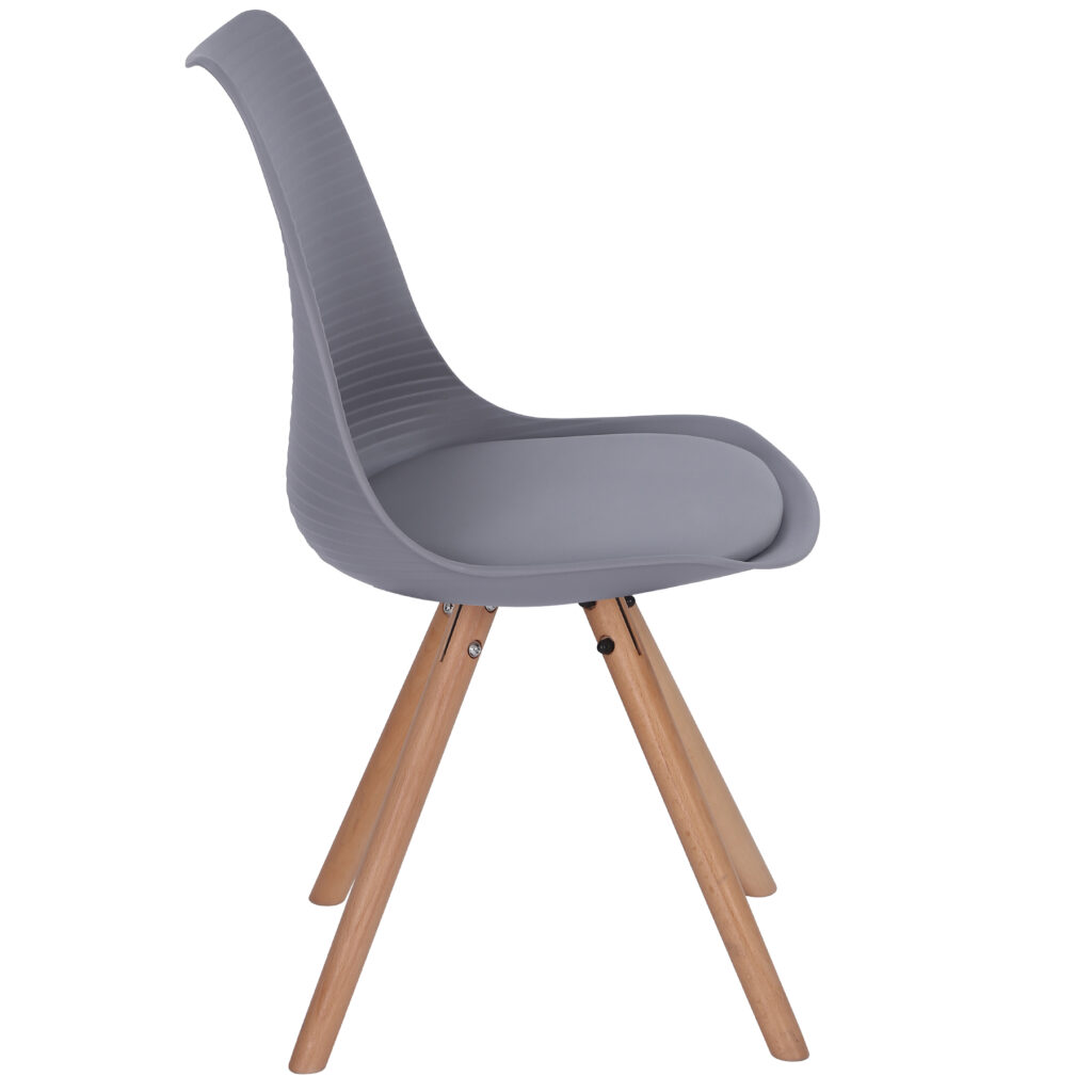 Стільці для їдальні в класичному скандинавському стилі – мінімалістичний, сучасний та практичний. Ці стільці – стильний елемент дизайну у Вашому житловому просторі – будь то кухня, їдальня, вітальня чи кімната для гостей. Оскільки ці стільці зроблені з твердого пластику, а подушки сидінь – з поліуретанової шкіри, їх особливо легко доглядати. Забруднення можна просто стерти.