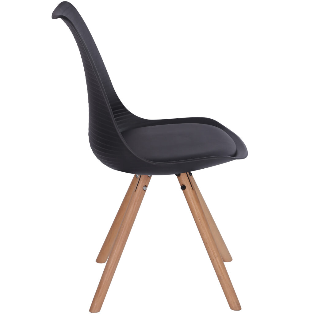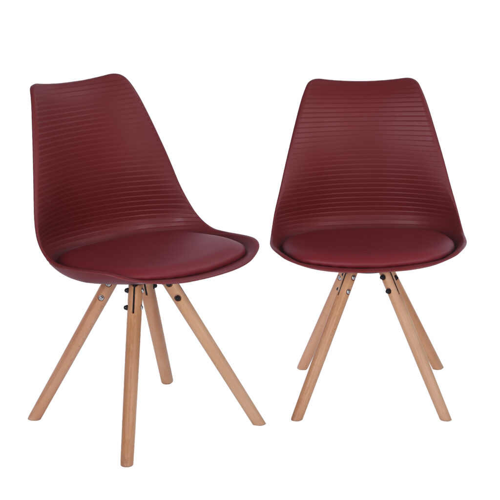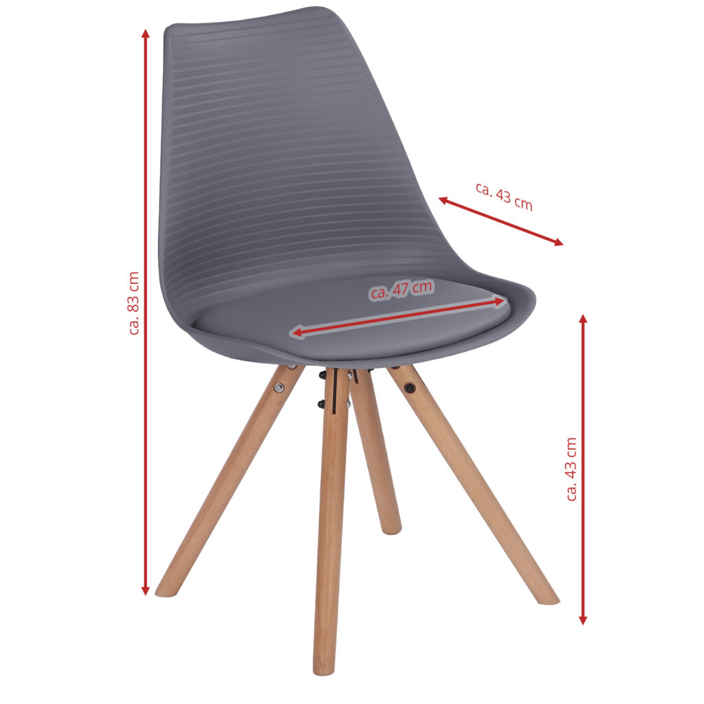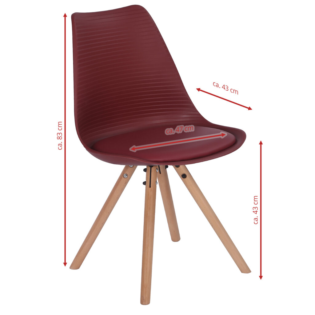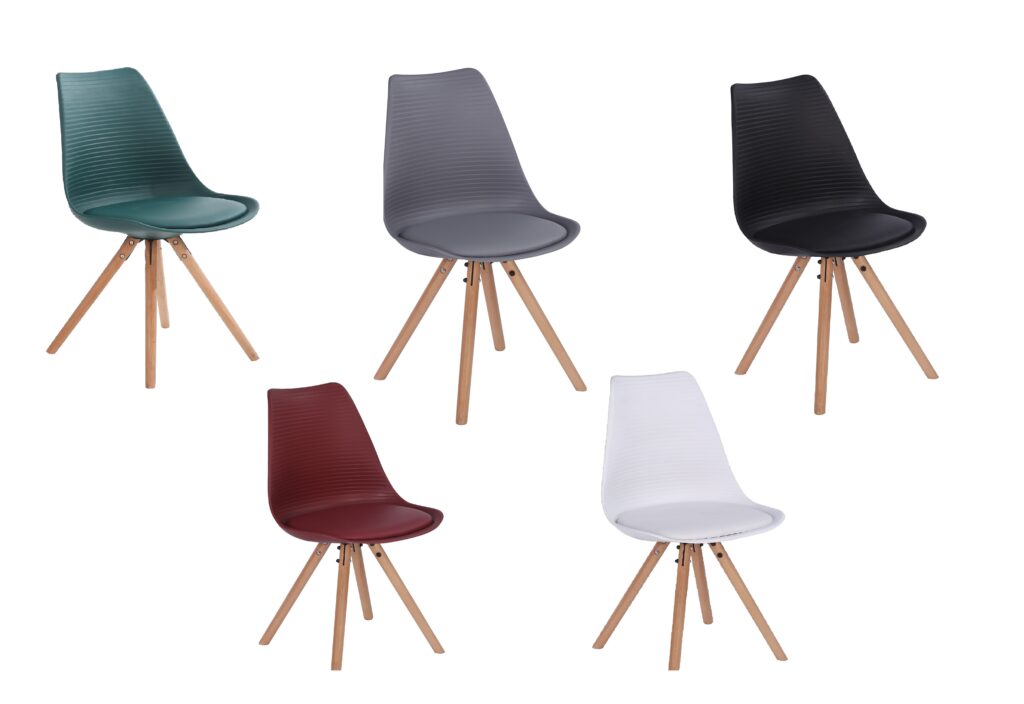 Стільці для їдальні в класичному скандинавському стилі – мінімалістичний, сучасний та практичний. Ці стільці – стильний елемент дизайну у Вашому житловому просторі – будь то кухня, їдальня, вітальня чи кімната для гостей. Оскільки ці стільці зроблені з твердого пластику, а подушки сидінь – з поліуретанової шкіри, їх особливо легко доглядати. Забруднення можна просто стерти.