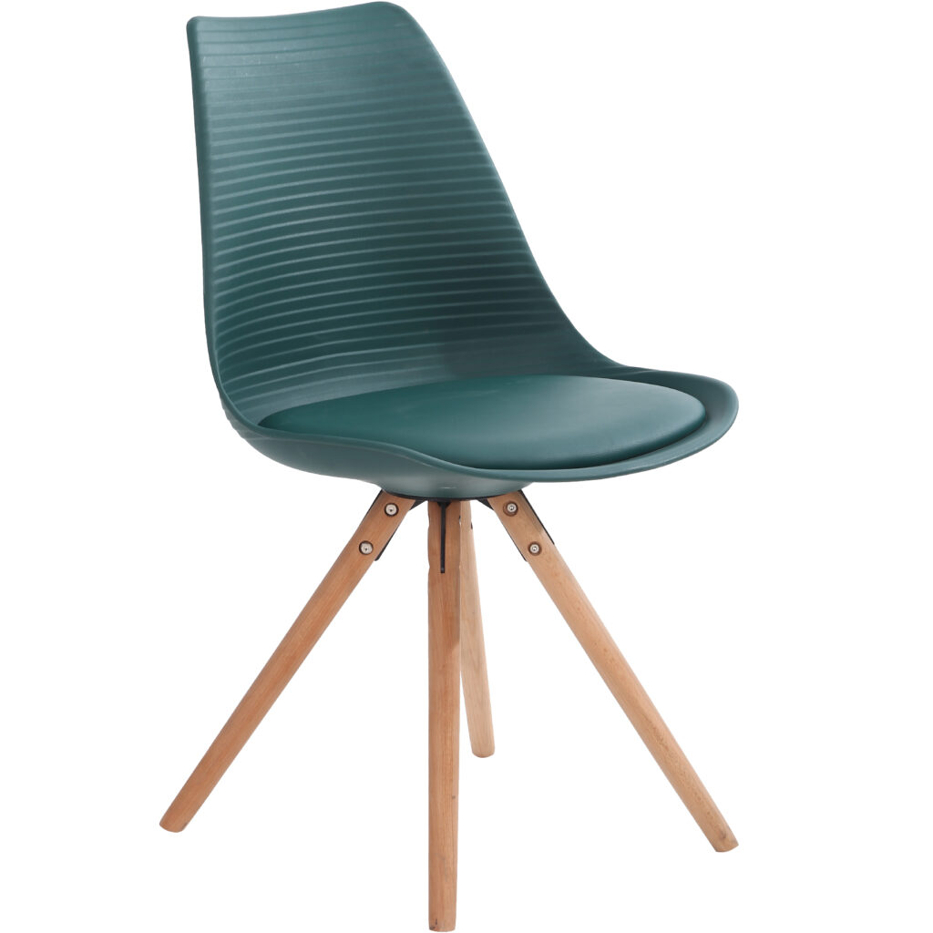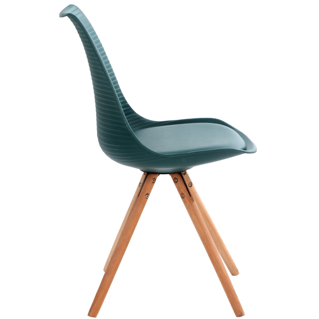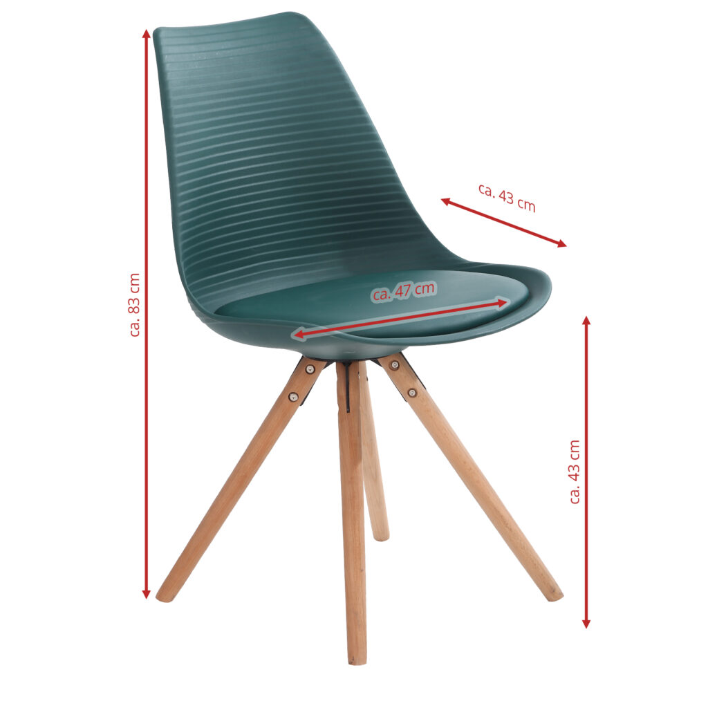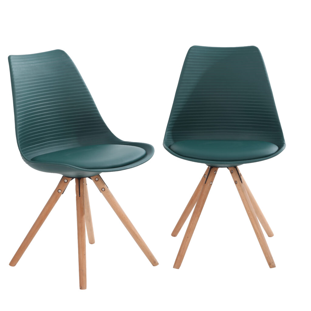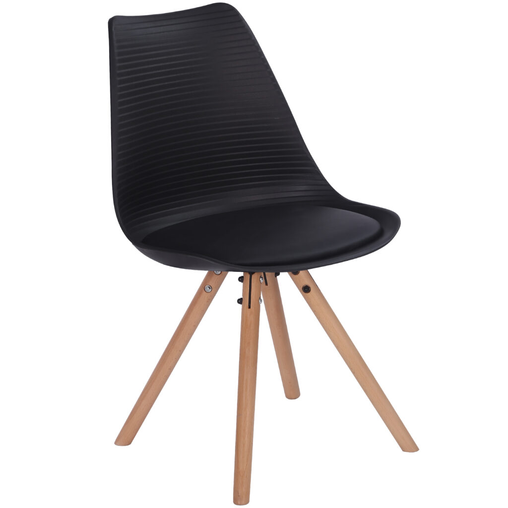 Стільці для їдальні в класичному скандинавському стилі – мінімалістичний, сучасний та практичний. Ці стільці – стильний елемент дизайну у Вашому житловому просторі – будь то кухня, їдальня, вітальня чи кімната для гостей. Оскільки ці стільці зроблені з твердого пластику, а подушки сидінь – з поліуретанової шкіри, їх особливо легко доглядати. Забруднення можна просто стерти.