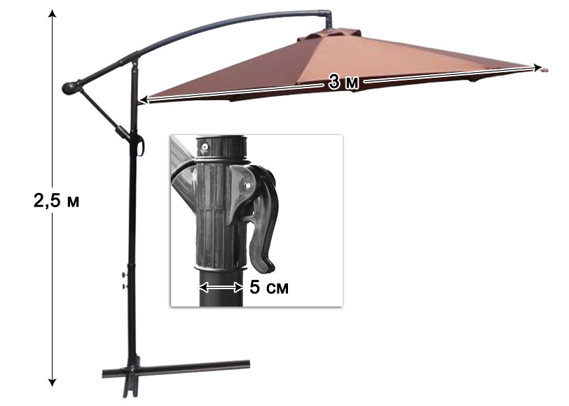 Садова парасолька – це ваш помічник у забезпеченні комфорту в будь-якій зоні відпочинку на відкритому повітрі: біля басейну, на садибі заміського будинку, в саду, на дачі … Його широка купол і спеціальна тканина, що захищає від ультрафіолету, забезпечить вам комфортне перебування на сонечку і вкриє від променів. А зручна ручка регулювання кута нахилу дозволяє ховатися від похилих сонячних променів до самого заходу сонця. Завдяки своєму благородному дизайну, парасолька несе не тільки функціональну користь, а й естетичну – вона вигідно підкреслить екстер’єр вашої ділянки та зробить її більш вишуканою.