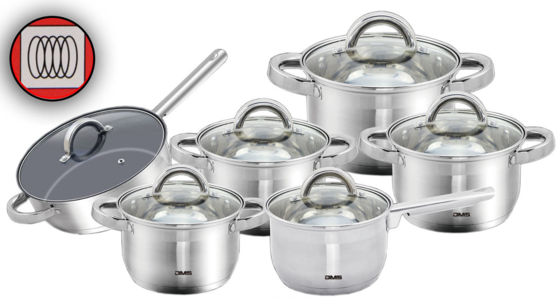 Набір каструль Сковорода Ківш 12 елемент Нержавіюча сталь Індукція