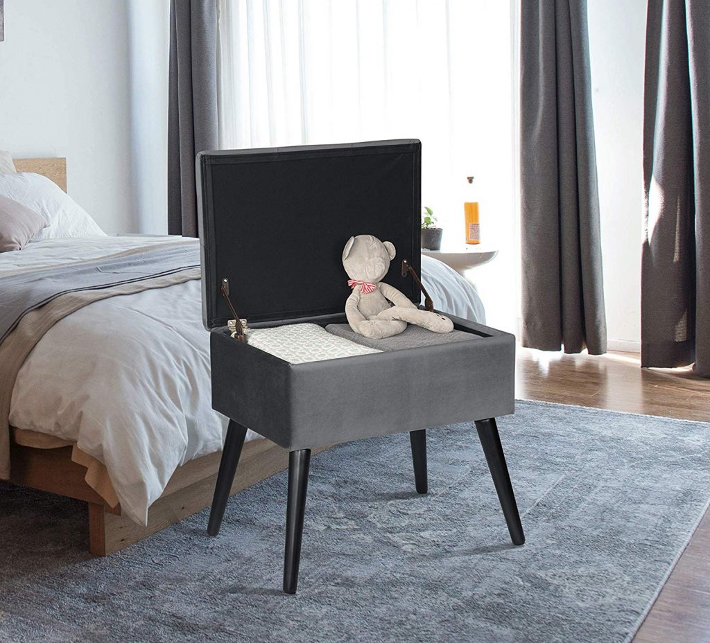 “Оксамитовий табурет з місцем для зберігання SH52 (Чорний)Оксамитовий табурет з місцем для зберігання SH52 (Чорний)”