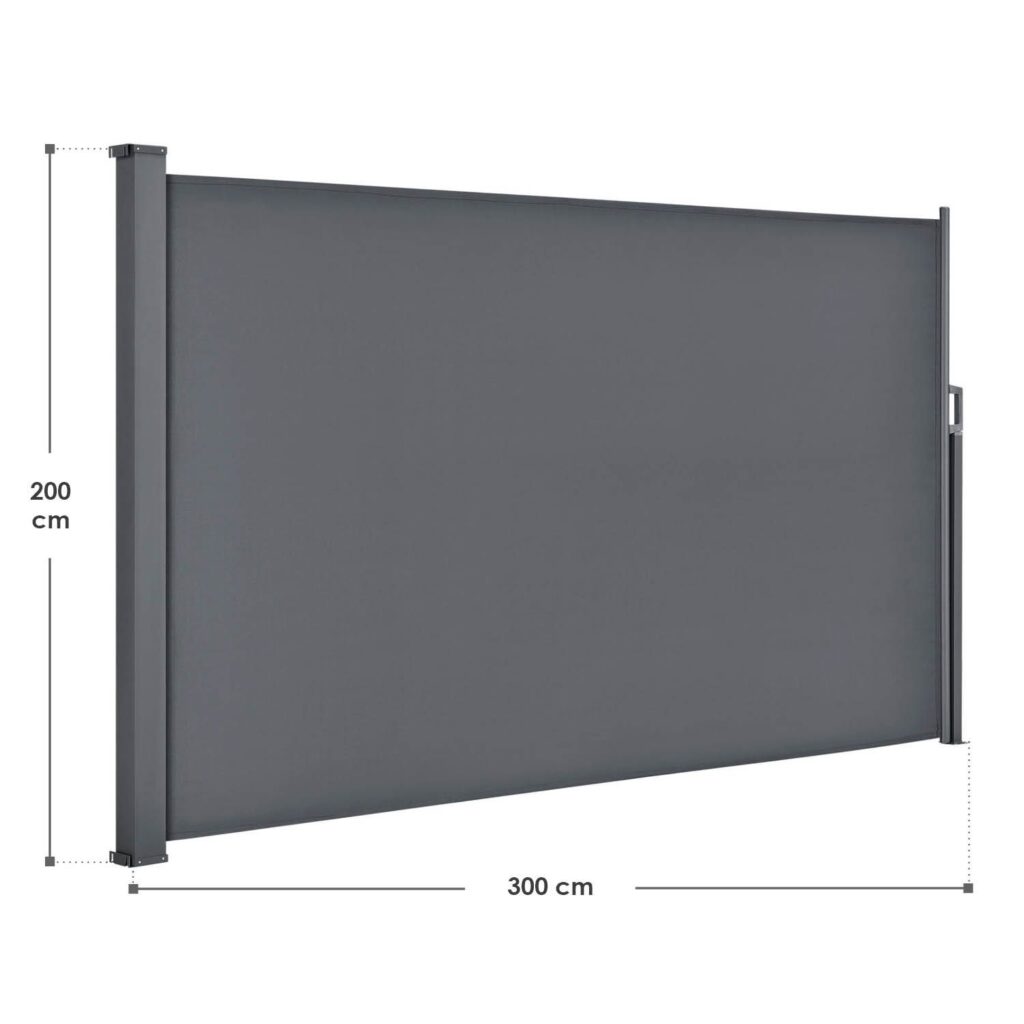 Поскольку боковая маркиза сворачивается в кассету, вы можете просто растянуть ткань до нужной вам длины. Это дает вам возможность настроить тент в соответствии с вашими потребностями, чтобы защитить свой внутренний дворик или сад от солнца и ветра. В целом современная перегородка имеет высоту 2 м и максимальную длину 3 м.