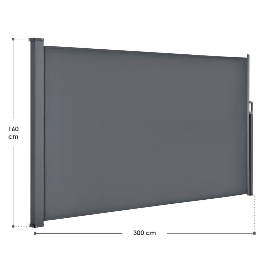 Выбрав нашу выдвижную боковую маркизу Dubai темно-серого цвета, вы определенно сделаете правильный выбор. Боковая шторка высотой 1,60 м и длиной 3 м отличается современным дизайном, атмосферостойкими материалами и индивидуально регулируемой длиной. Защитите свой балкон или патио от солнца, ветра и посторонних взглядов соседей. С нашим боковым навесом ничто не помешает уютному воскресному завтраку и долгим летним вечерам в саду.
