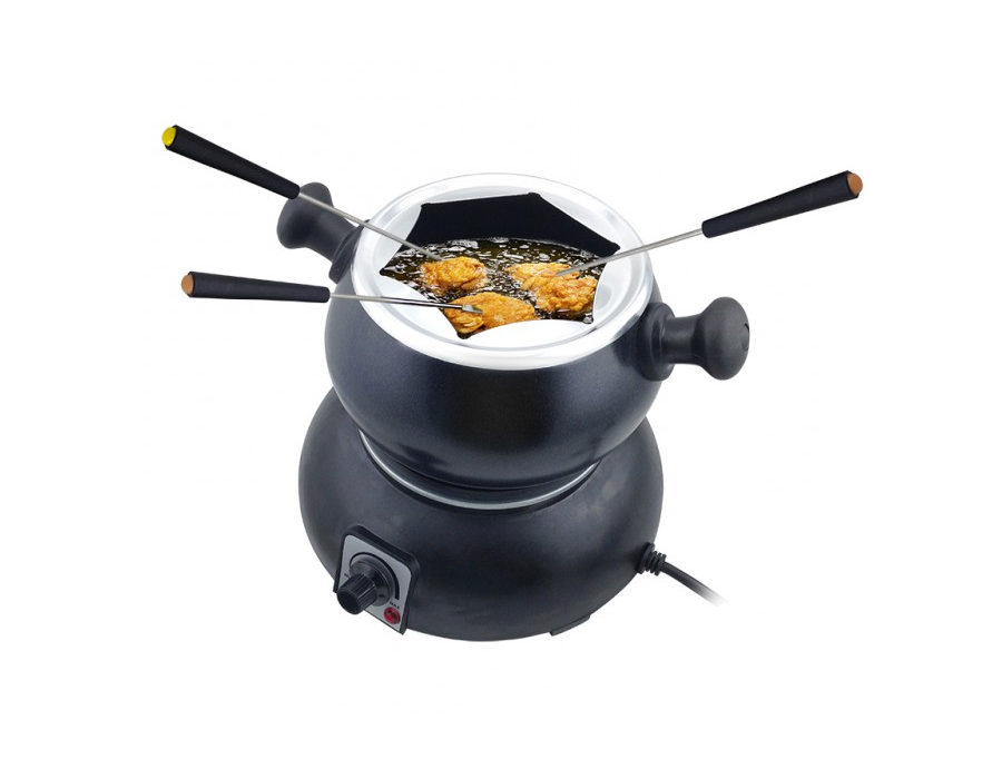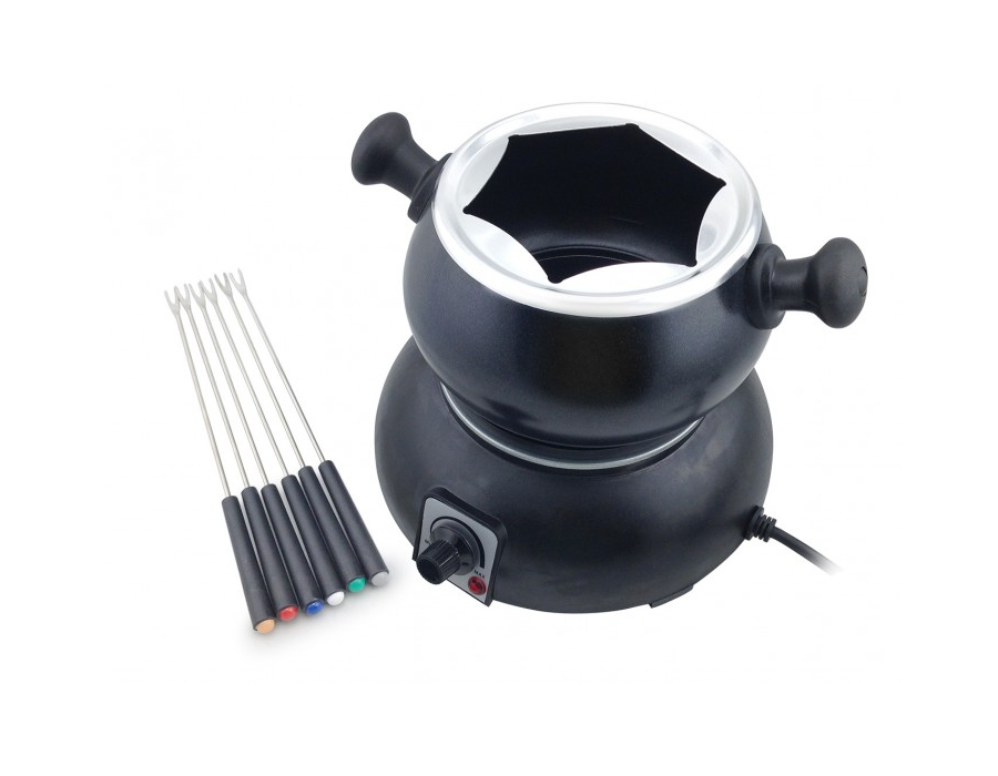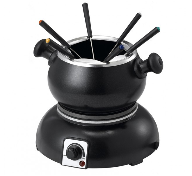 - Аксесуари: Посібник користувача (англійською, німецькою, польською…), захист від бризок кришкою та 6 вилок для фондю