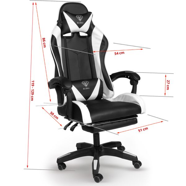 1 “Геймерське крісло ігрове з підставкою для ніг, до 120кг навантаження, з 4D підлокітниками Білий”