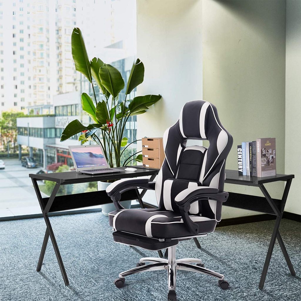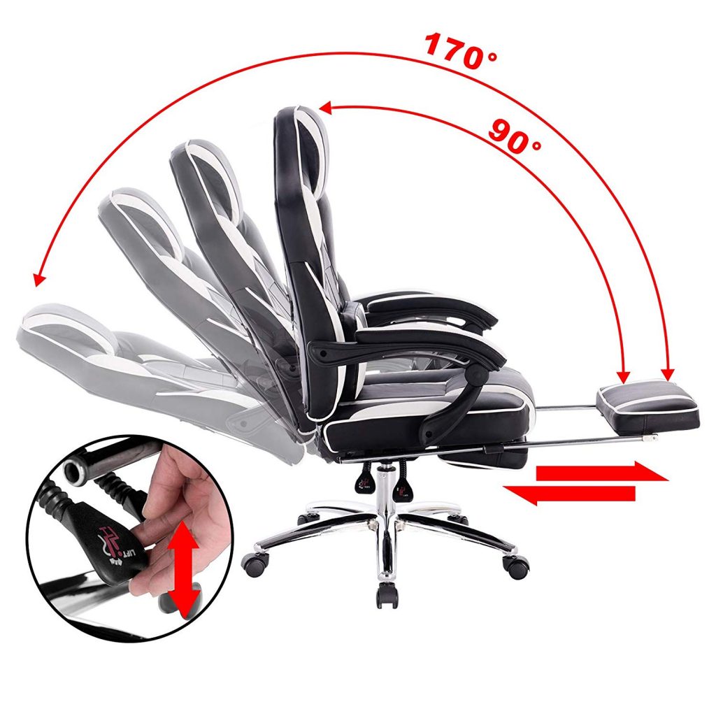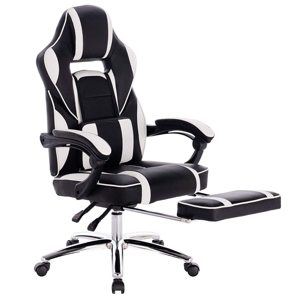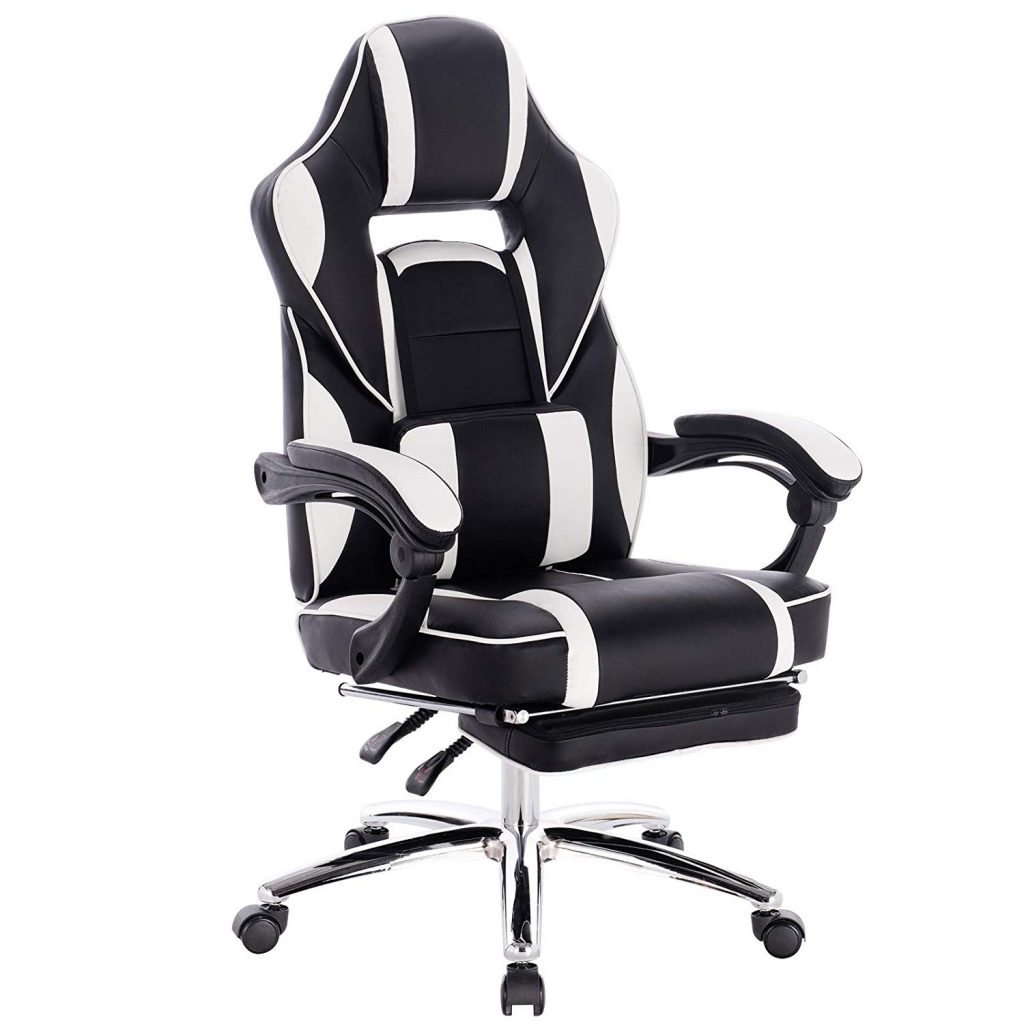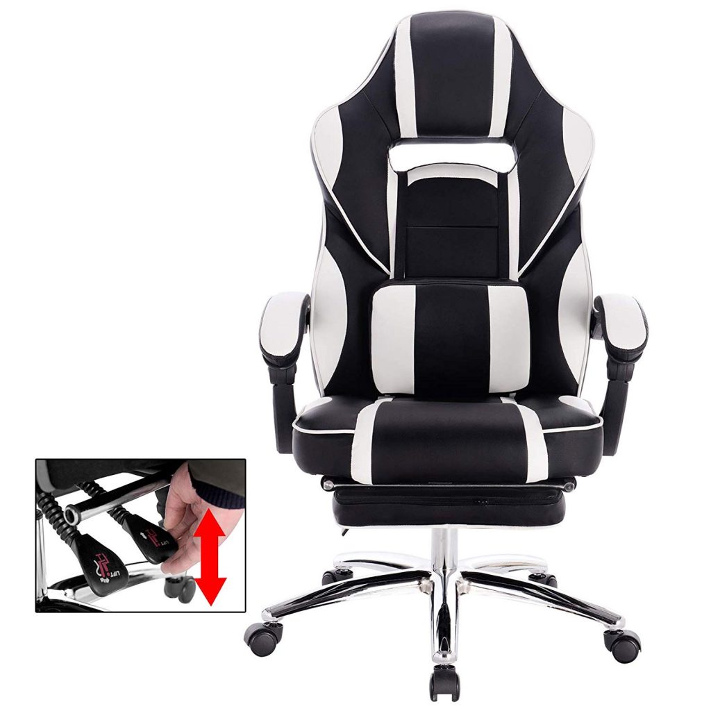 Ігрове крісло зі шкіряними подушками, з підставкою для ніг BS25. У нашій продукції використовуються лише першокласні матеріали, що характеризує якість.