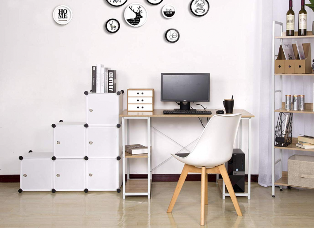 – Матеріал: дерев’яні панелі (поверхня зі світлого дуба) та сталева рама (забарвлені у білий колір)