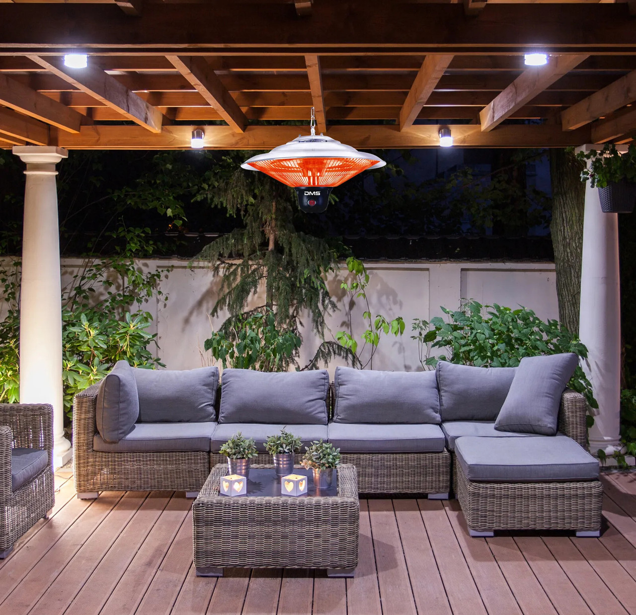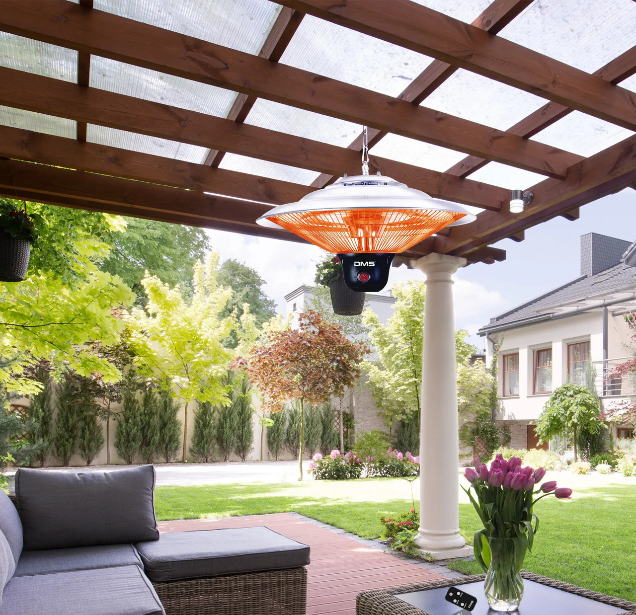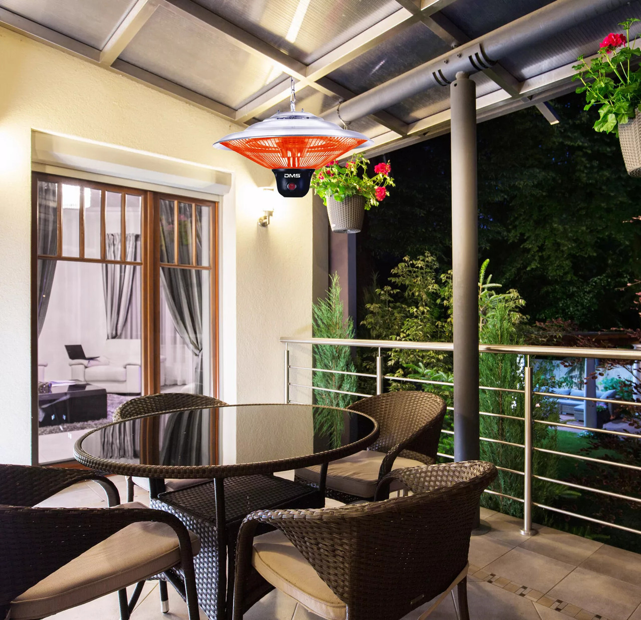 Ви зможете насолоджуватися прохолодними днями на терасі чи балконі, завдяки даному обігрівачу. Він генерує оптимальне випромінюване тепло. Легкий і зручний обігрівач можна швидко повісити на стелю, потягнувши за шнурок, і він ідеально підходить для використання на терасі, балконі, в гаражі або в майстерні. За допомогою пульта дистанційного керування ви можете легко вибрати між 3 різними рівнями нагріву. За допомогою ланцюга та карабіна, що входять у комплект, обігрівач можна легко встановити на стелі.