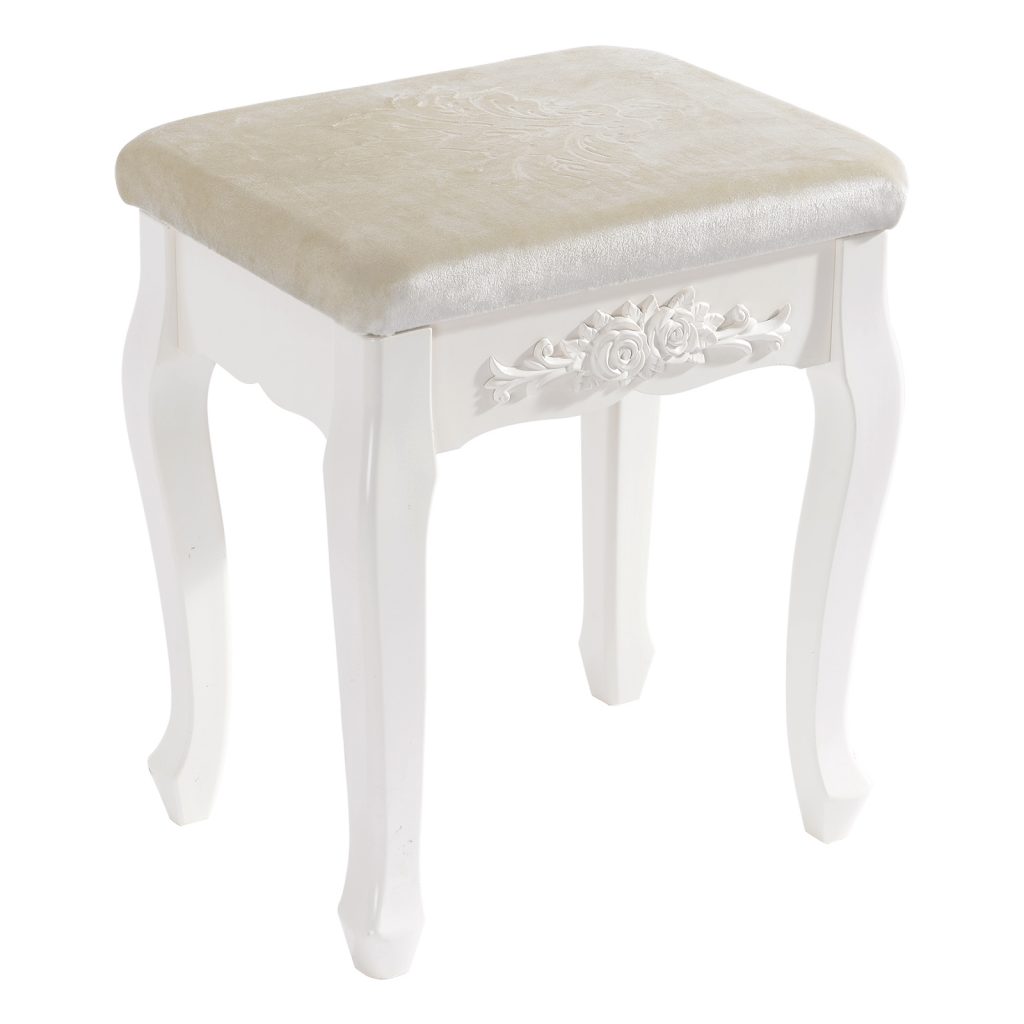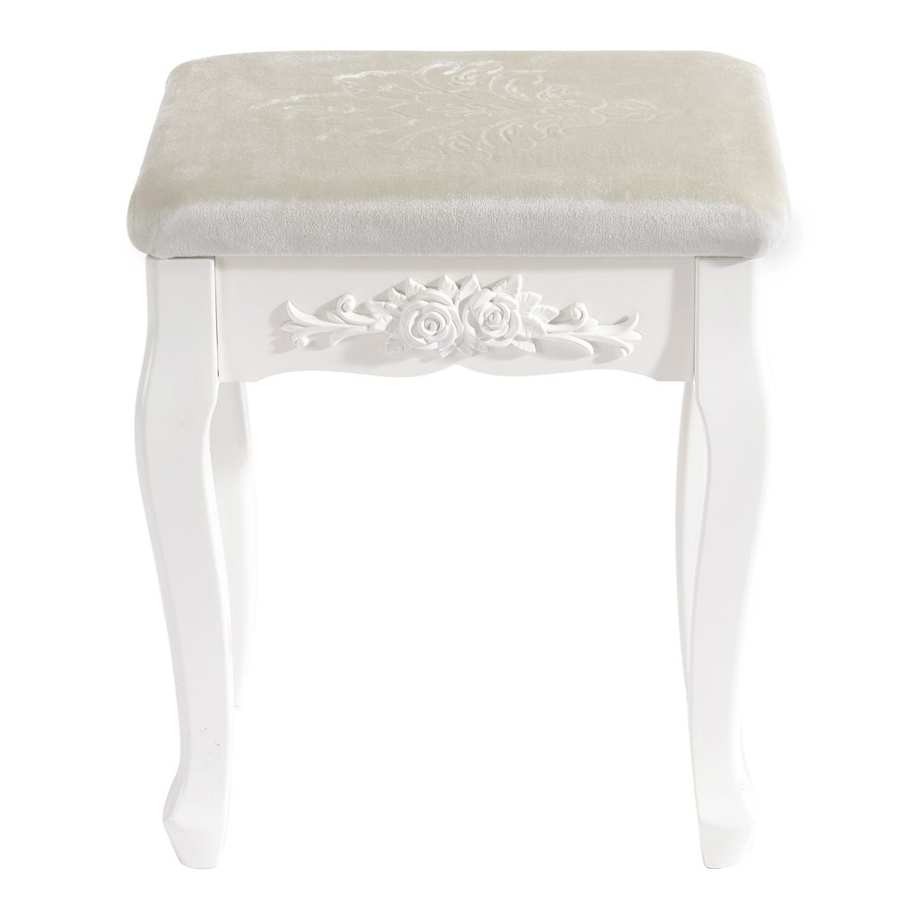 Наш продукт приваблює з погляду дизайну та якості. Першокласний матеріал МДФ та пов’язана з цим довговічна конструкція цього стільця гарантує довгий строк служби. На додаток до свого гарного дизайну, косметичний стілець надзвичайно практичний. Всі елементи виготовлені із МДФ та ручної роботи. Біла обробка надає стільцю сучасний, елегантний та світлий вигляд. Табурет добре обтягнутий і легко чиститься вологою ганчіркою. Цей стілець створює у вашій вітальні романтичну та неповторну атмосферу заміського будинку.